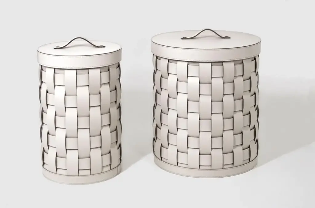 Demetra paper bin diam. 30X h 35 cm removable inner bin included & demetra paper bin diam. 22X h 34,5 cm with lid and removable plastic insert Imprinted by Maker