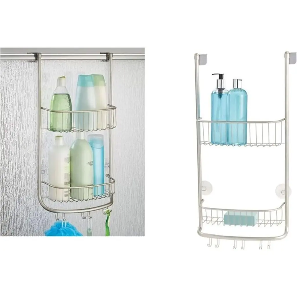 Bathroom Over The Door Shower Caddy With Storage Baskets Shelves For Shampoo, Conditioner, Soap - Satin