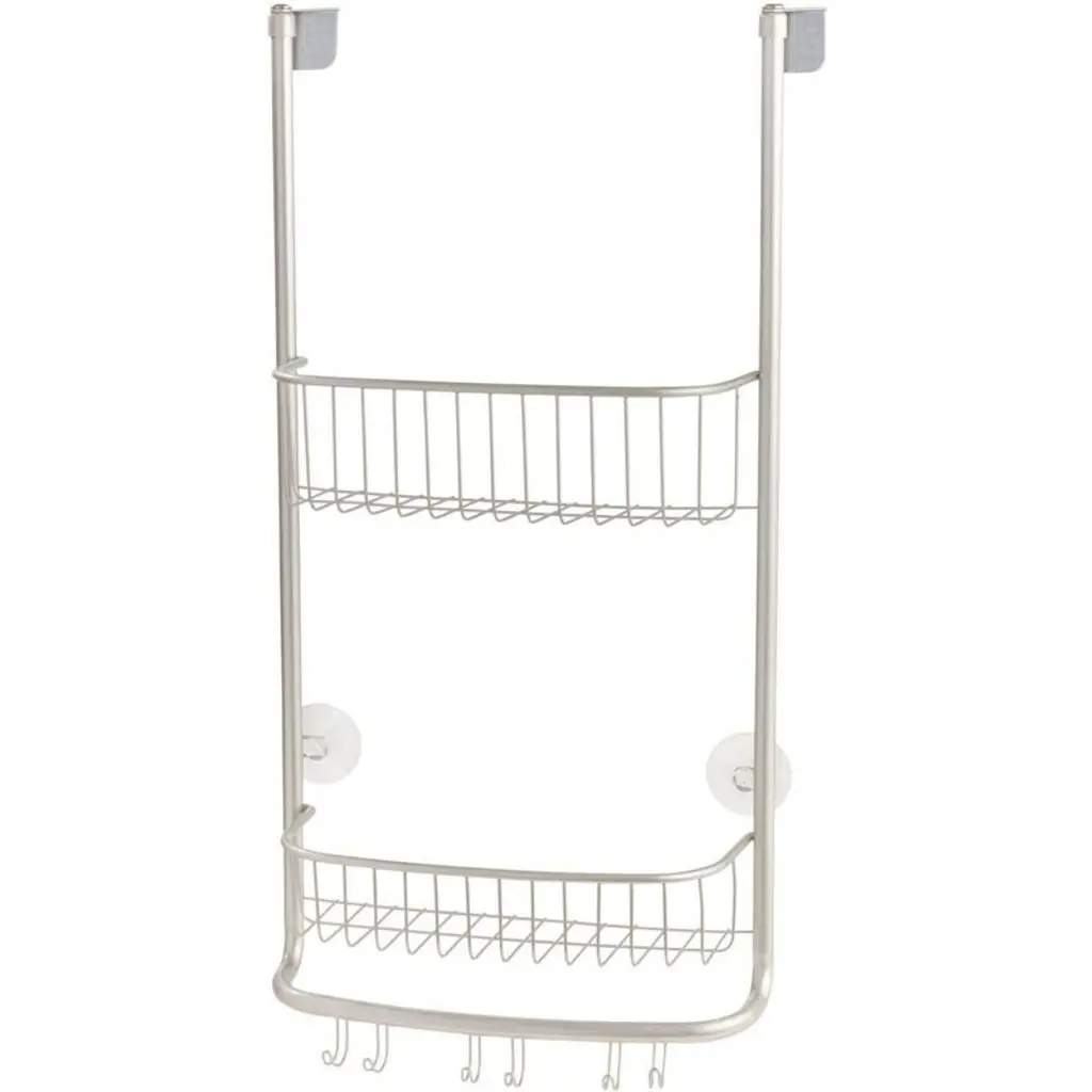 Space-Saving Shower Storage – Features 2 roomy baskets for tall bottles and 3 sturdy hooks for towels/robes, maximizing unused shower space with instant organization.Tool-Free Installation – Simply hangs over doors (up to 2" thick) with secure suction cups—no drilling or hardware needed. Foam padding protects glass doors from scratches.Rust-Resistant Steel Build – Durable matte black steel construction withstands daily humidity and is easily wiped clean with soap and water.Compact Yet Spacious – Measures to fit most showers while offering ample storage without crowding.Trusted Quality – Backed by a global leader in innovative home organization, delivering stylish solutions at accessible prices.