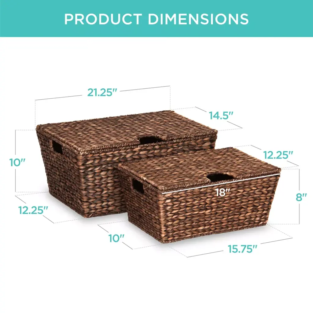 Best Choice Products Set Of 2 Xl Water Hyacinth Woven Tapered Storage Basket Chests W/ Attached Lid, Handle Hole