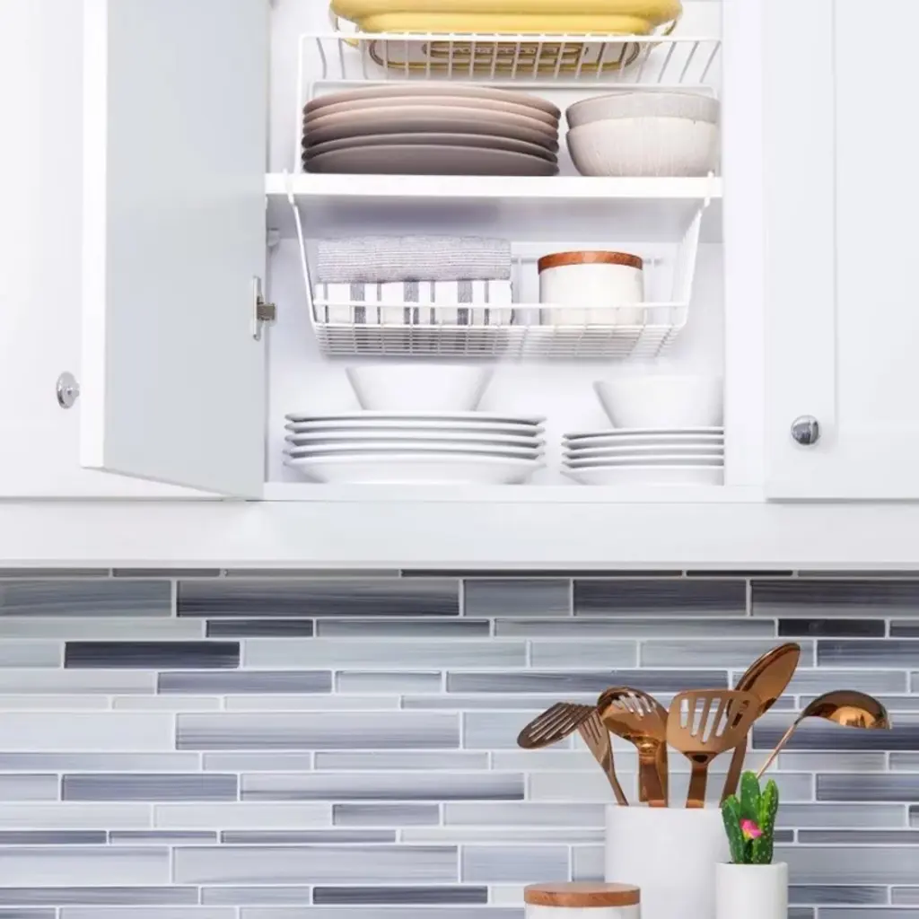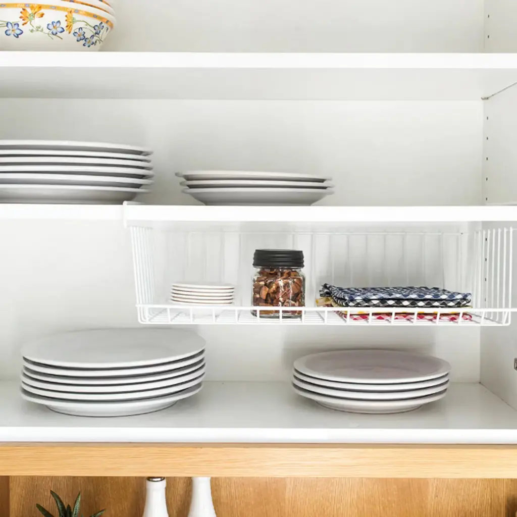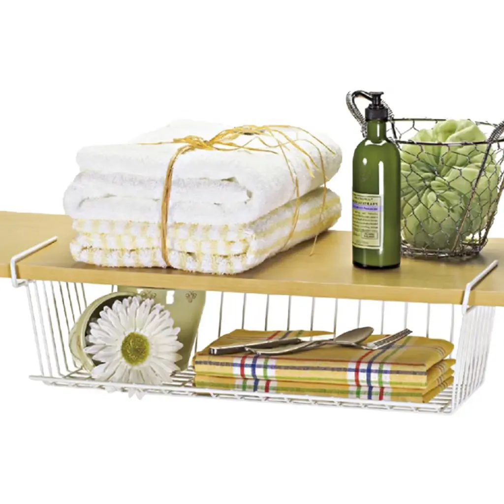 Maximize your kitchen storage effortlessly with the Better Houseware Undershelf Basket. Crafted from durable white-coated steel, this basket seamlessly slides onto existing shelves, instantly creating additional space for items like linens, plates, or pantry goods. Its open design ensures easy access and visibility, while the sturdy construction supports daily use without the need for tools or permanent installation._