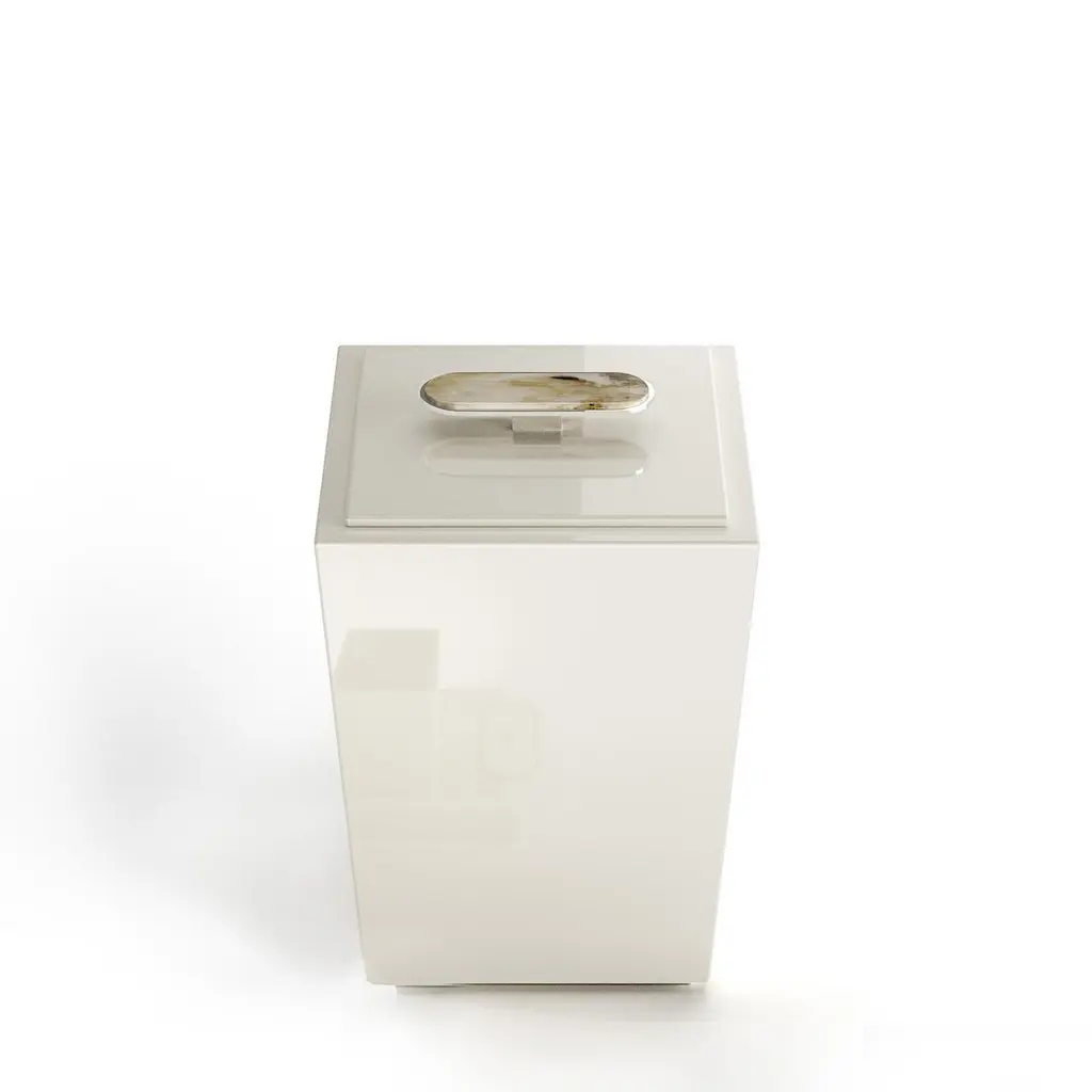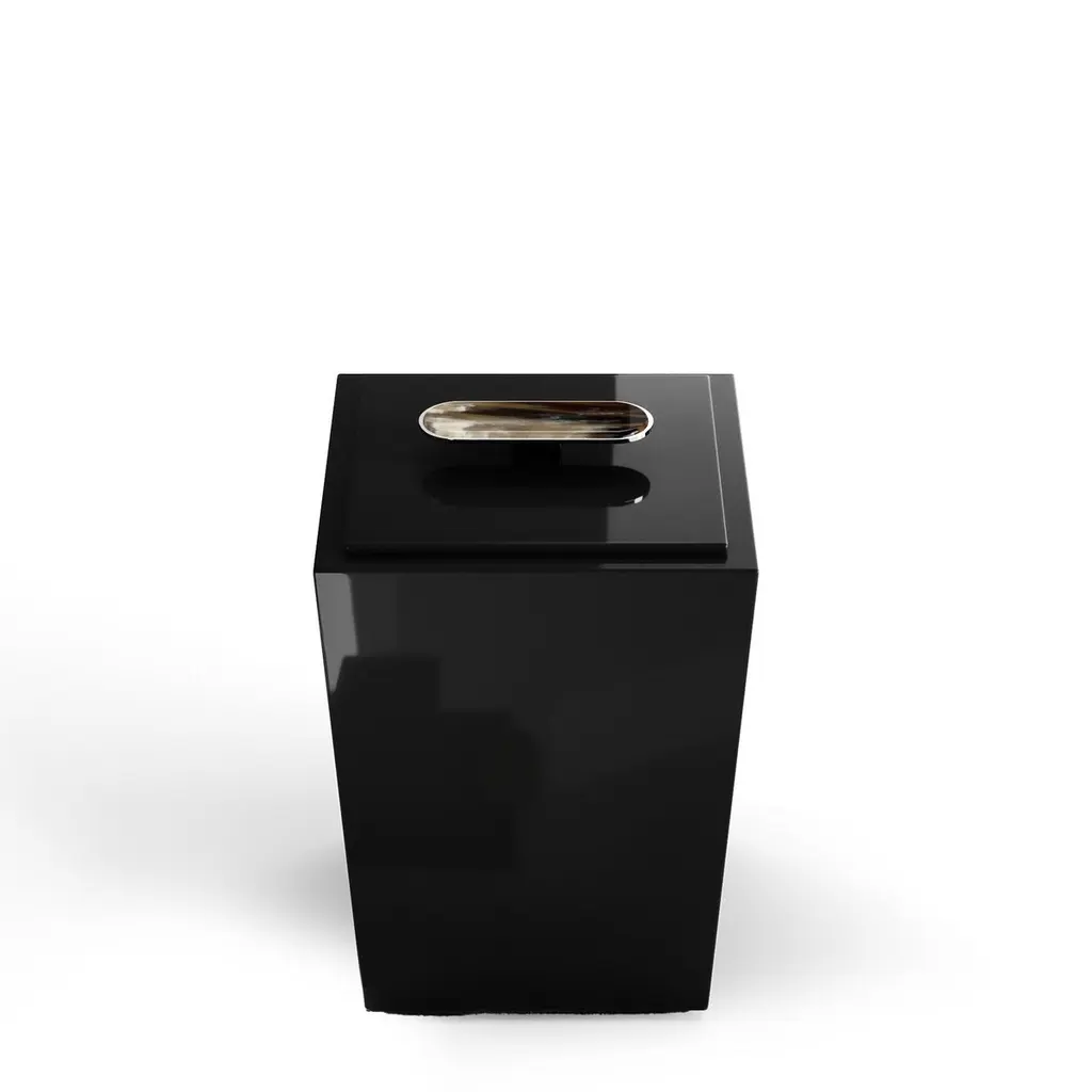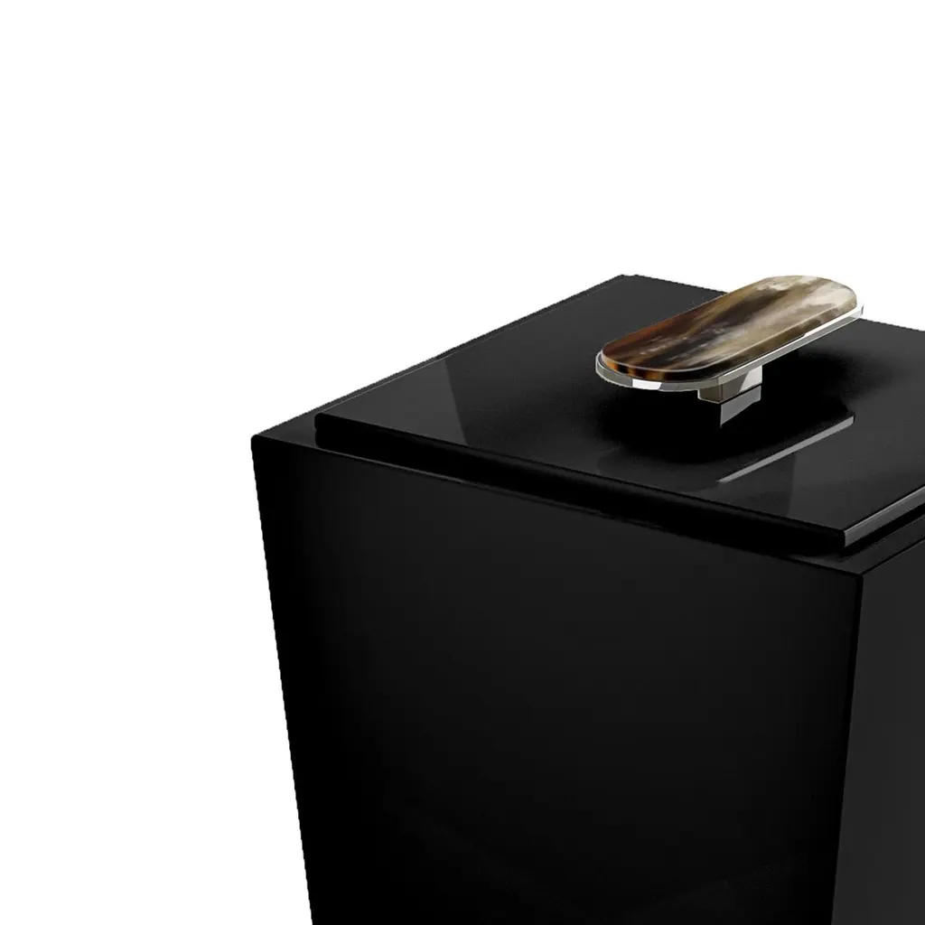 The Bicco waste paper basket is a sophisticated and versatile accessory, designed to elevate any bathroom or office space. Fashioned from glossy ebony, Bicco sports a practical lid embellished by an elegant handle in Corno Italiano and chromed brass, adding a unique style to the design. The sleek lines of this waste paper basket are elevated by the meticulous selection of natural materials and by the attention to detail that make each piece a unique testament to craftsmanship.Note: Colors and shades of Corno Italiano processed by our Company are unique and due to the natural origin of raw material. For this reason Corno Italiano tones that can be seen in pictures are indicative and cannot be reproduced in finished products.