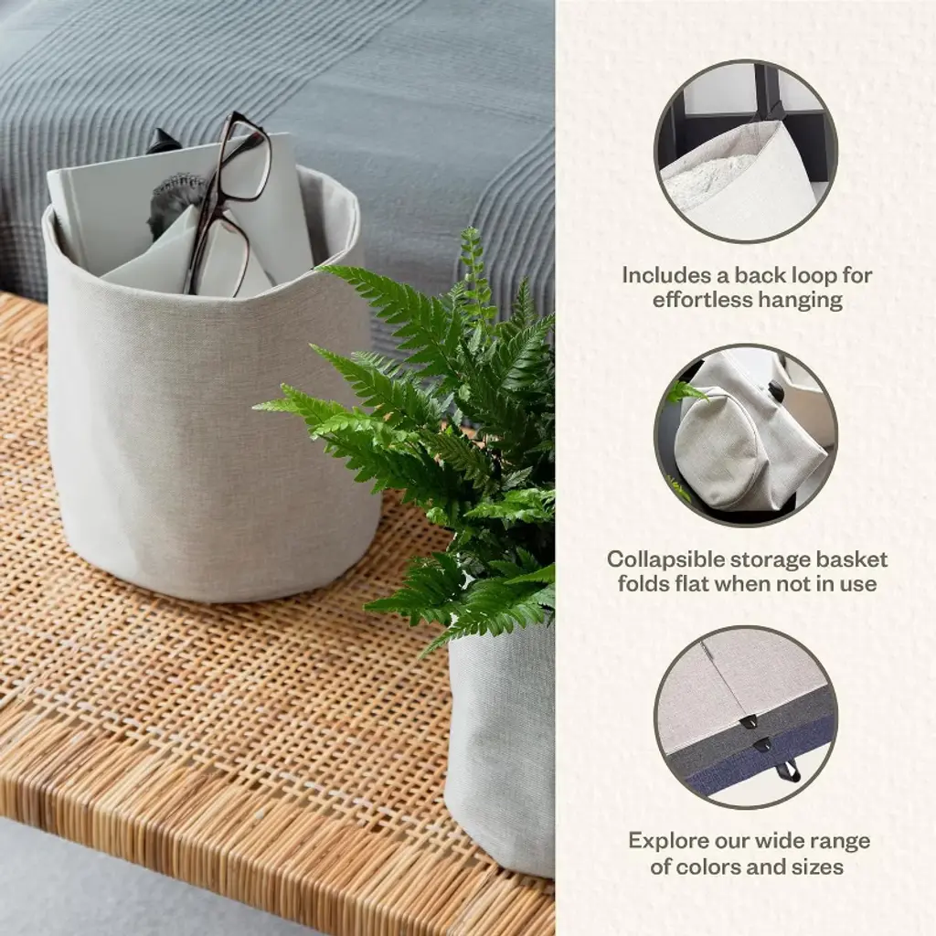 Bigso’s Large Soft Hang Around Hanging Storage Basket is made to tidy up your house or office! The contemporary look combined with the versatile organizational options make these the perfect storage solutions. The 8.7″x8.7″ size allows you to store everyday necessities by standing it up straight or it can be used as a hanging basket with the help of the sewn in black loop. These soft sided storage bins are easily portable, functional, and can be spot cleaned.