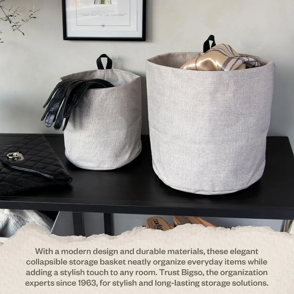Bigso’s Small Soft Hang Around Hanging Storage Basket is made to tidy up your house or office! The contemporary look combined with the versatile organizational options make these the perfect storage solutions. The 6.7?x6.7? size allows you to store everyday necessities by standing it up straight or it can be used as a hanging basket with the help of the sewn in black loop. These soft sided storage bins are easily portable, functional, and can be spot cleaned.