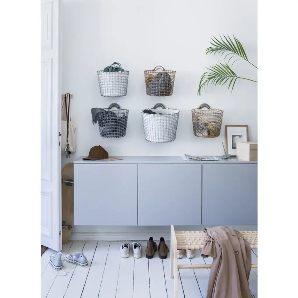 The Korbo Bin is a beautiful hand-woven metal basket that features a convenient handle. The sturdy wire basket helps to keep your home in order whilst adding a stylish touch to the interior. You can also make your Korbo baskets even more versatile with the separately sold bottom plates, basket liners and wall hangers. The Swedish company Korbo started manufacturing wire baskets in 1922 and the weaving technique has remained the same ever since. The baskets are woven by hand from a single long wire completely without welding. Thanks to the unique manufacturing technique and the superior materials, the baskets will last for a lifetime. First used by farmers and fisherman, the Korbo baskets are a great addition to any garden and household.