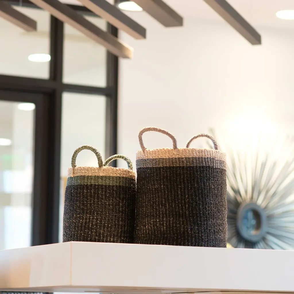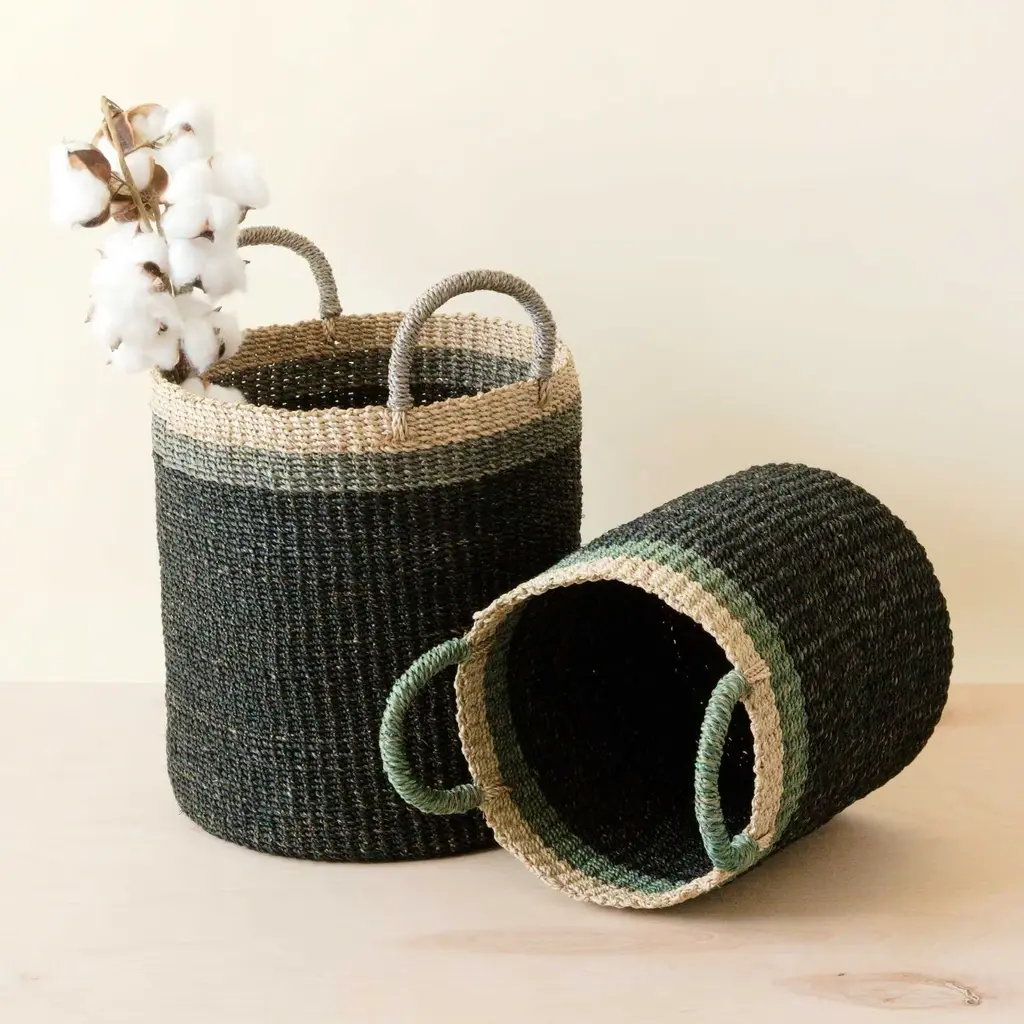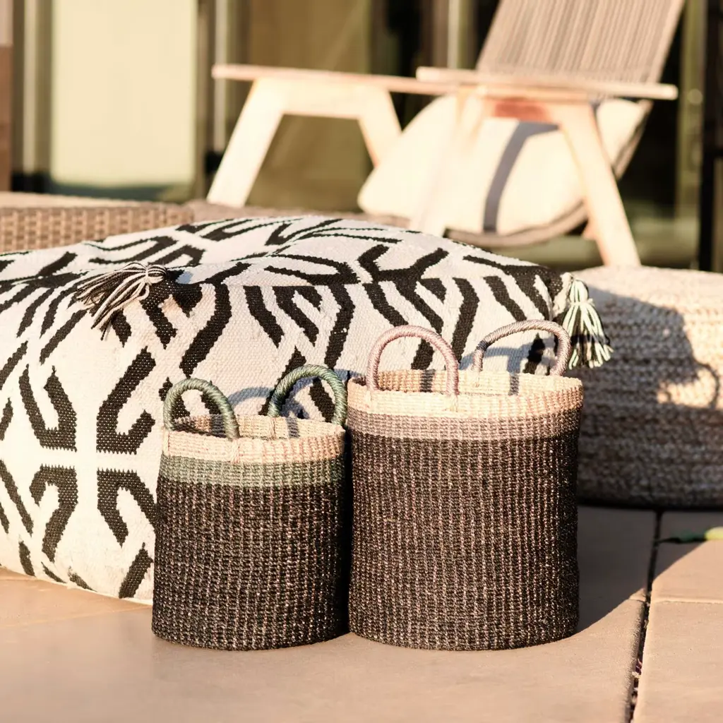 Our handwoven baskets now come in a set of two! Both stylish and functional, they add a natural vibe to just about any room. Store everyday objects or use them with your favorite greens as planters. Display individually or pair them side by side for more impact. Made with manila hemp, each piece is carefully handwoven by artisans in the Philippines.Since each piece is handwoven, please expect slight variation in design, color, shape, and size.