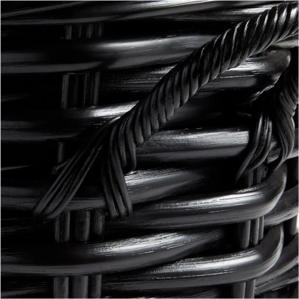 Heated until pliable, sustainable rattan weaves a simple and elegant round basket. Two twisted handles provide convenient handholds for carrying, and the matte black finish is understated and sophisticated. Our exclusive black rattan basket neatly corrals everything from toys to decorative pillows or serves as a modern organic cachepot for a potted plant.