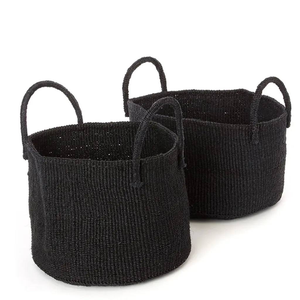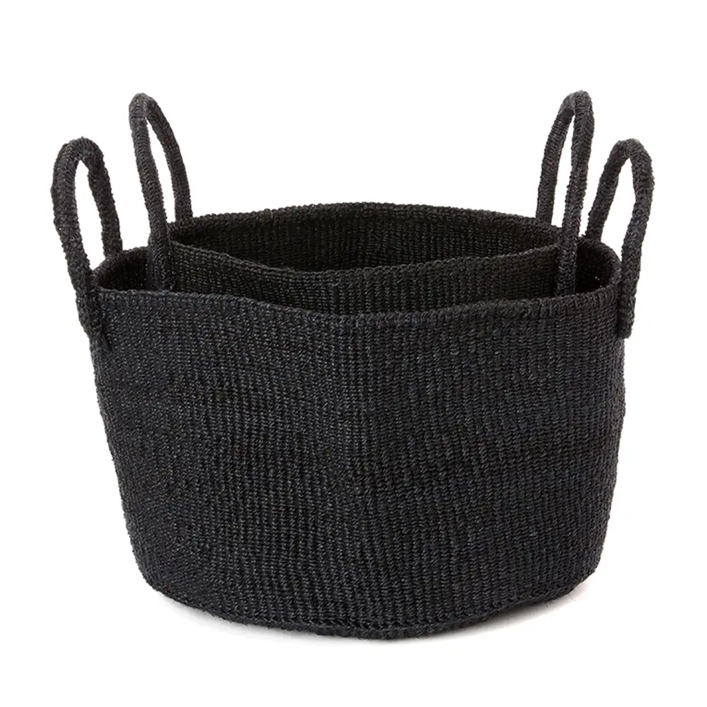 Description Using strands of natural sisal, women living in remote areas of rural Kenya earn income by crafting beautifully simple baskets that can be used for chic storage in any room of the home. Sisal is a natural fiber extracted from an agave plant, so the baskets are coveted for their durability and ability to be re-shaped. Handcrafted in Kenya. These baskets will have slight variations in size and design due to their one of a kind and handmade nature. Sold individually. Dimensions: Large: 16"D x 10"H and 14" tall including handles. Materials: Sisal fiber PLEASE NOTE: Our baskets are shipped packed down to save on shipping costs. Easily reshape your basket by spraying with water, shape by hand, then let dry (more instructions included upon order).