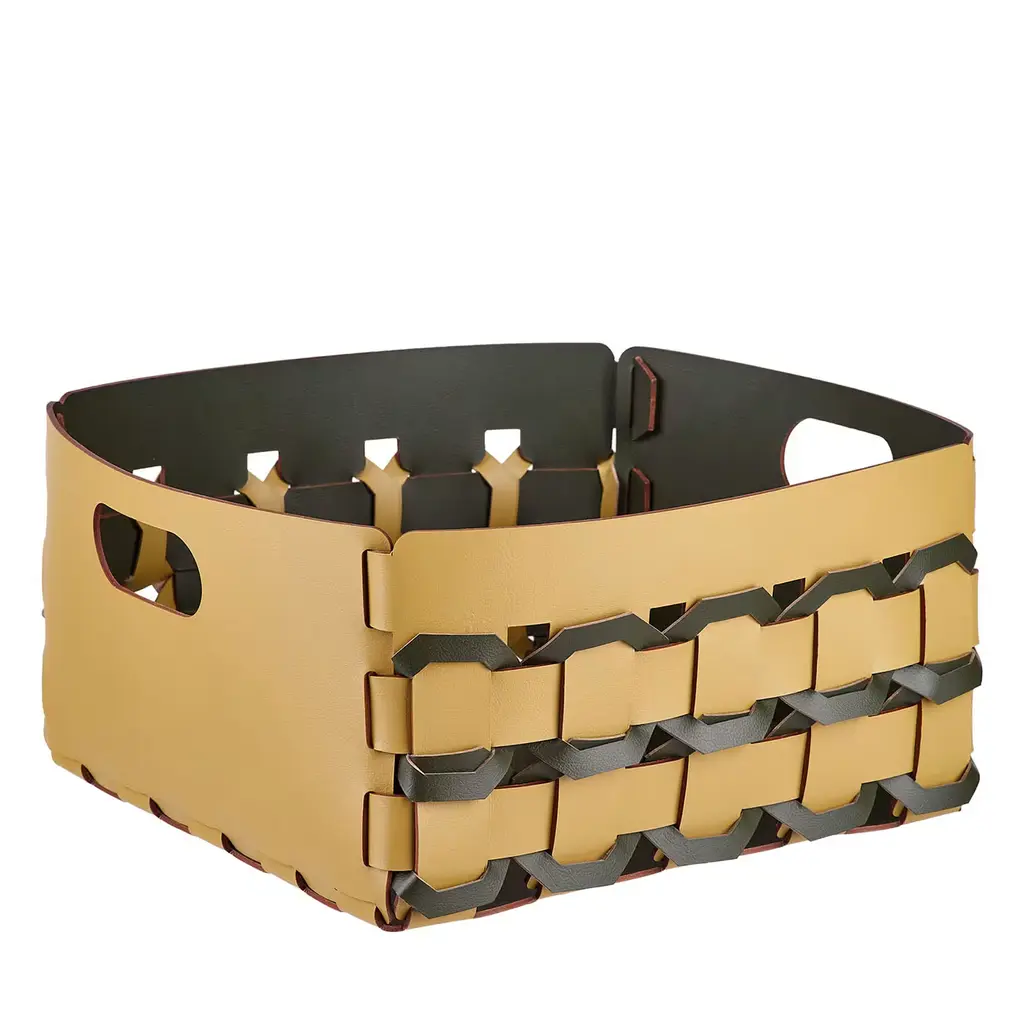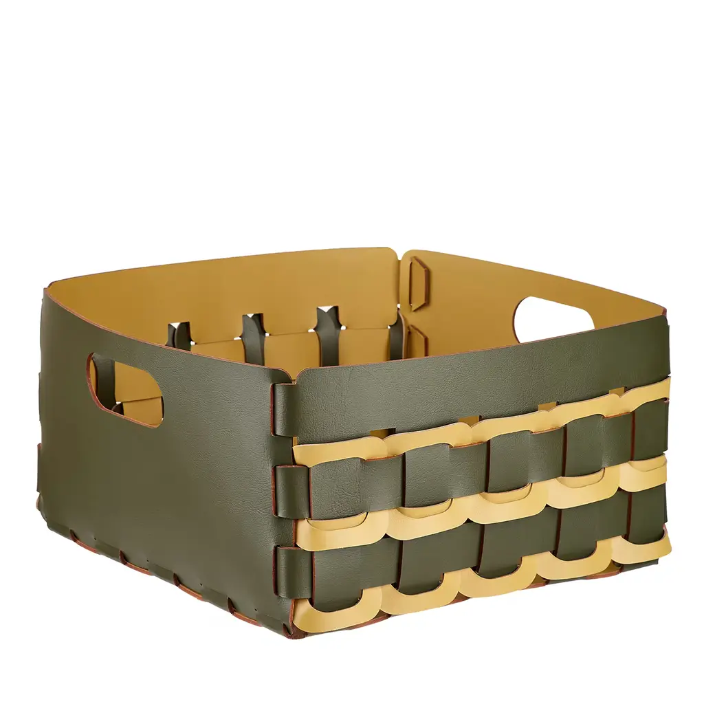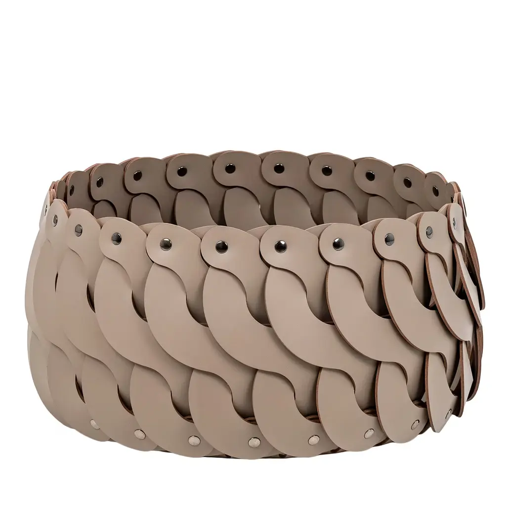 All-purpose basket, a truly multifunctional accessory that seamlessly adapts to your various needs. This exceptional basket goes beyond traditional usage, transforming effortlessly into a cachepot or even a champagne bucket. Each product utilizes ADJ's multifunctional leather, which undergoes double-sided dyeing and a specialized anti-vandal treatment, resulting in enhanced durability against wear, scratches, and abrasions.