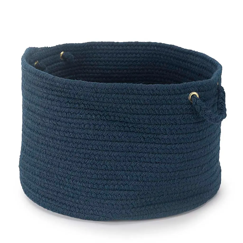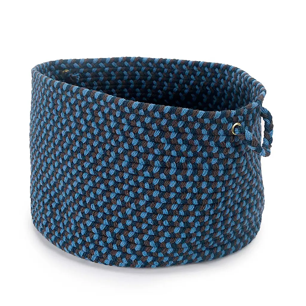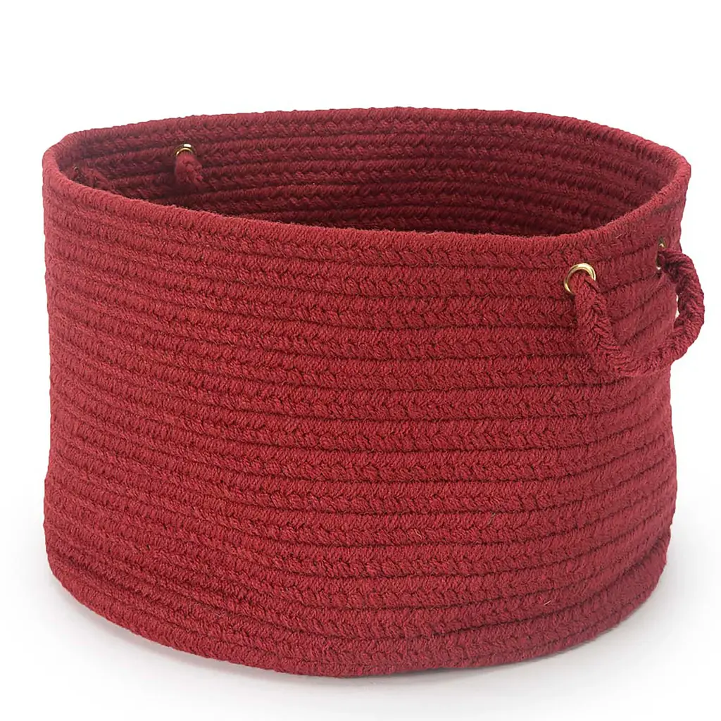 Crafted in New England in true colonial style, our Roanoke Braided Basket is flat braided using texturized polypropylene yarns, which create a wool-like finish and makes it stronger and more flexible.With a woven polypro core, these heavy-weight braids will always retain their shape and strength. Use indoors or out - the colors will always remain bright and true. Plus, they coordinate with our Roanoke Polypro Rugs!Made with pride in the USA by Rhody Rugs, a family run company.Please note: Similar to the coordinating Stair Treads and Chair Pads, the multicolored Baskets are made with the predominant colors of yarn used in our larger Roanoke Braided Rugs. Minor "irregularities" are inherent with all handcrafted products and contribute to their one-of-a-kind appeal. Colors may vary slightly due to dye lot changes. Minimal size and pattern repeat variations are completely normal and to be expected. What may appear to be an irregularity in color or construction is a part of the basket's handmade nature.