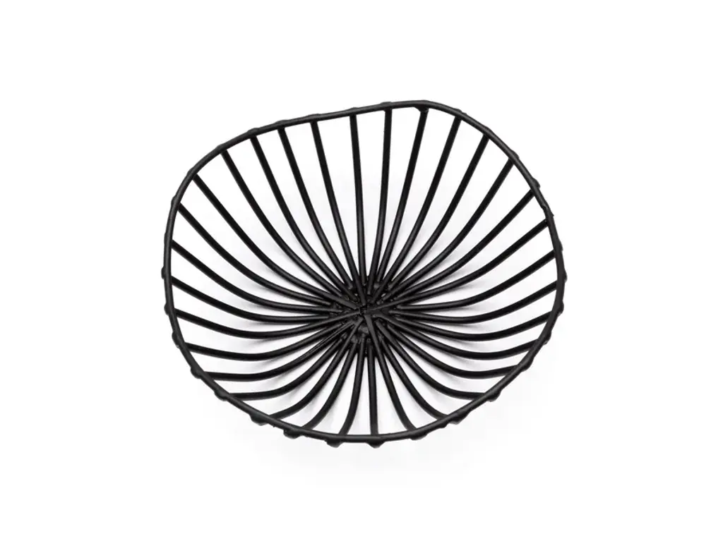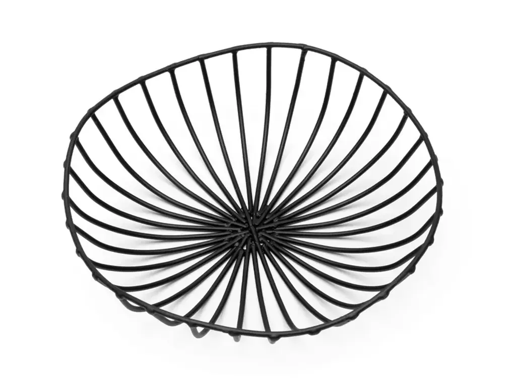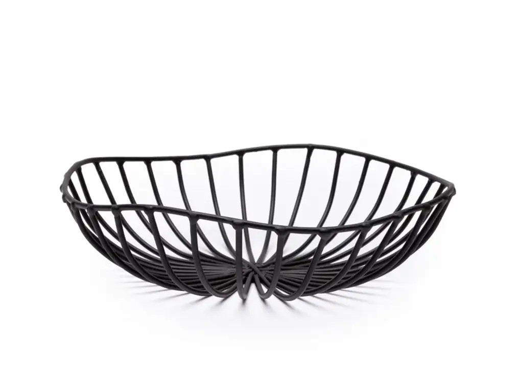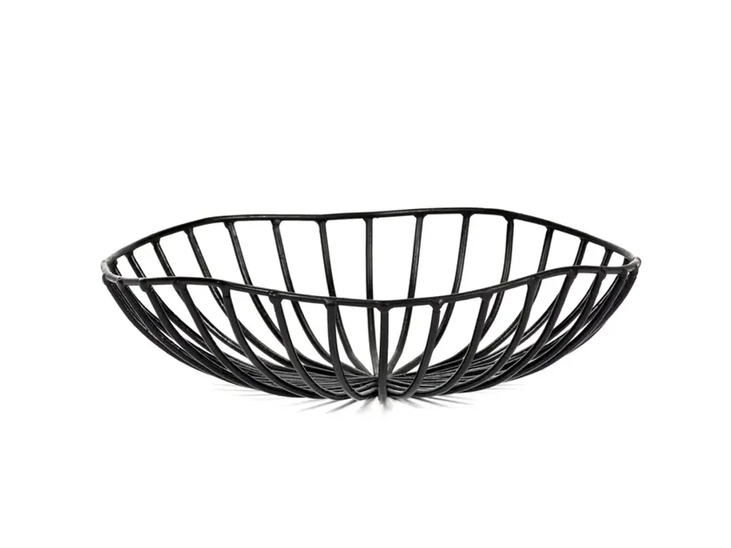 Bread basket Catu is a painted iron basket.The Catu basket by Antonino Sciortino is a large metal bread basket in elegant black. The craftsmanship emanates from it, and the wire basket is a perfect example of functionality and simplicity.The hands of the Milan (Italy)-based designed Antonino Sciortino bring metal to life. Objects shaped from soft iron create a sculpture-like aura. The handcrafted finish emphasizes the soul we recognize in each object. Can be perfectly integrated in a wide range of interior spaces because of their pure forms and the vintage look and finish.