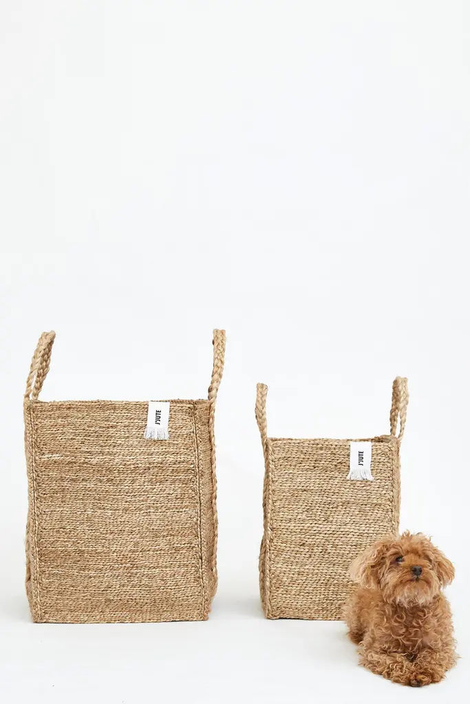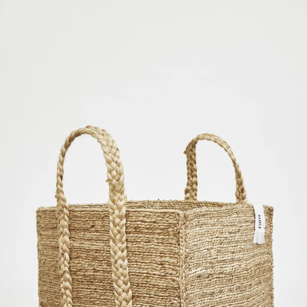 J'Jute is a luxury all-natural, sustainable brand based in Bondi Beach, Australia. Each piece is designed in Australia and handwoven by skilled artisans in India. Product InformationColour: Natural JuteMaterial: Natural Jute- a soft durable plant fibre Dimensions: 16" x 16" x 20" High (40 L x 40 W x 50 H cm) Not including handlesJ'Jute tags are removable. These styles will all ship in their own Organic Cotton dust bag which double as Shopping Totes.Purpose: A wonderful Laundry basket! New Rectangular Tall Baskets are made for "Neat Structured Storage". Still, an all-around "storage for everything" basket our rectangular baskets have a feeling of order. Ideal for the office, living room, bedroom, or anywhere that you would like tall storage. Perfect size basket for indoor plants or trees. Will sag slightly as the material is soft and not rigid. Due to the handcrafted and natural nature of J'Jute's products, sizes may vary slightly. any fraying or loose fibres are not considered a fault. We recommend filling the baskets full for 3-5 days after Eco-friendly Flat Pack Shipping.