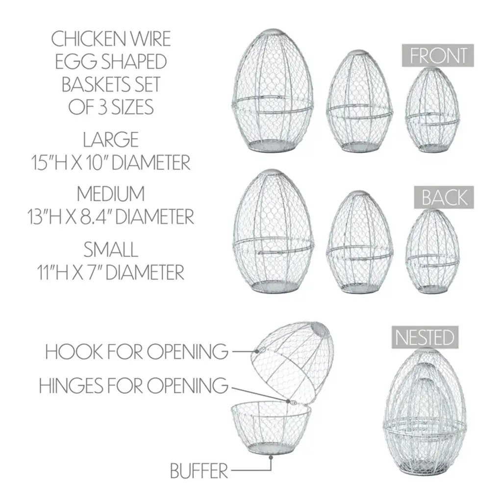 Bunny Hop Chicken Wire Egg Shaped Baskets Set Of 3 Sizes (Set Of 3)
