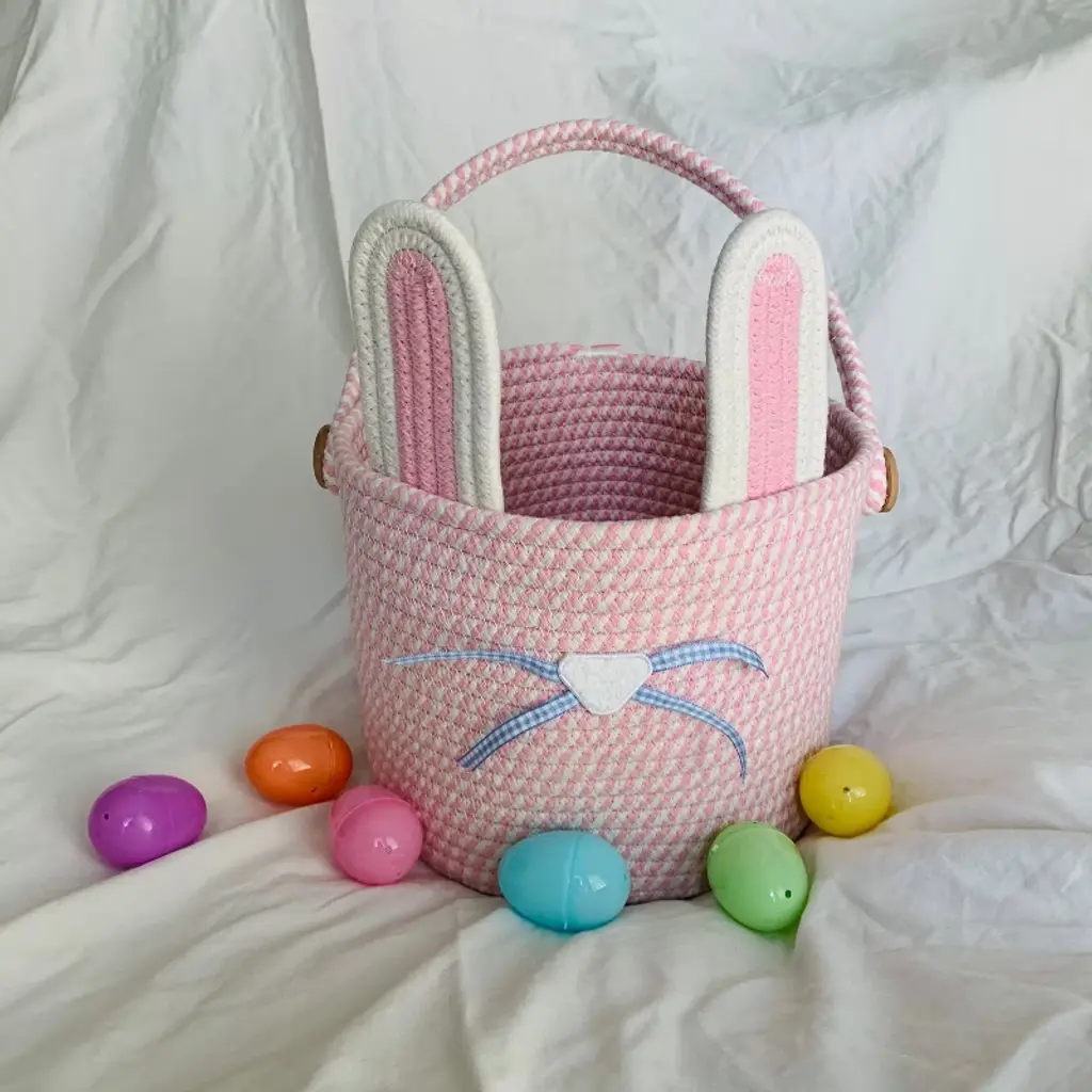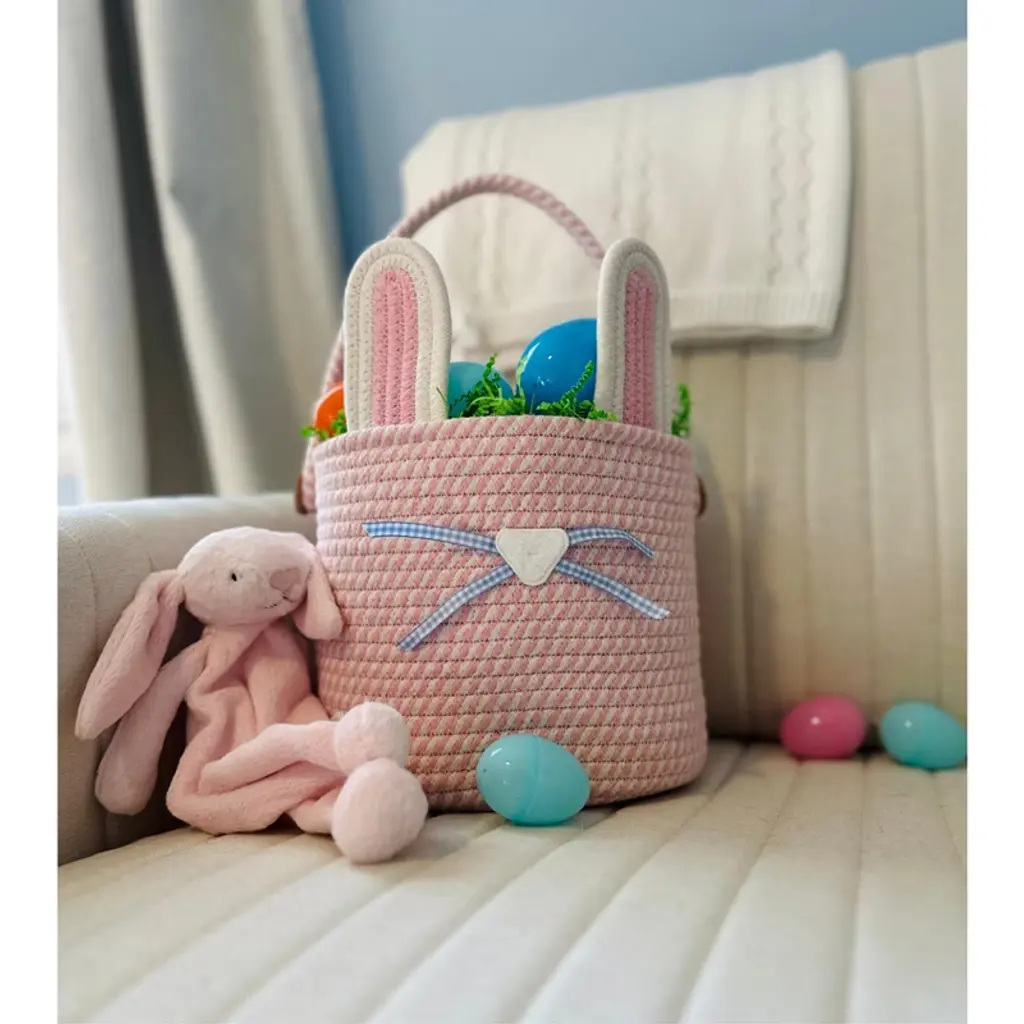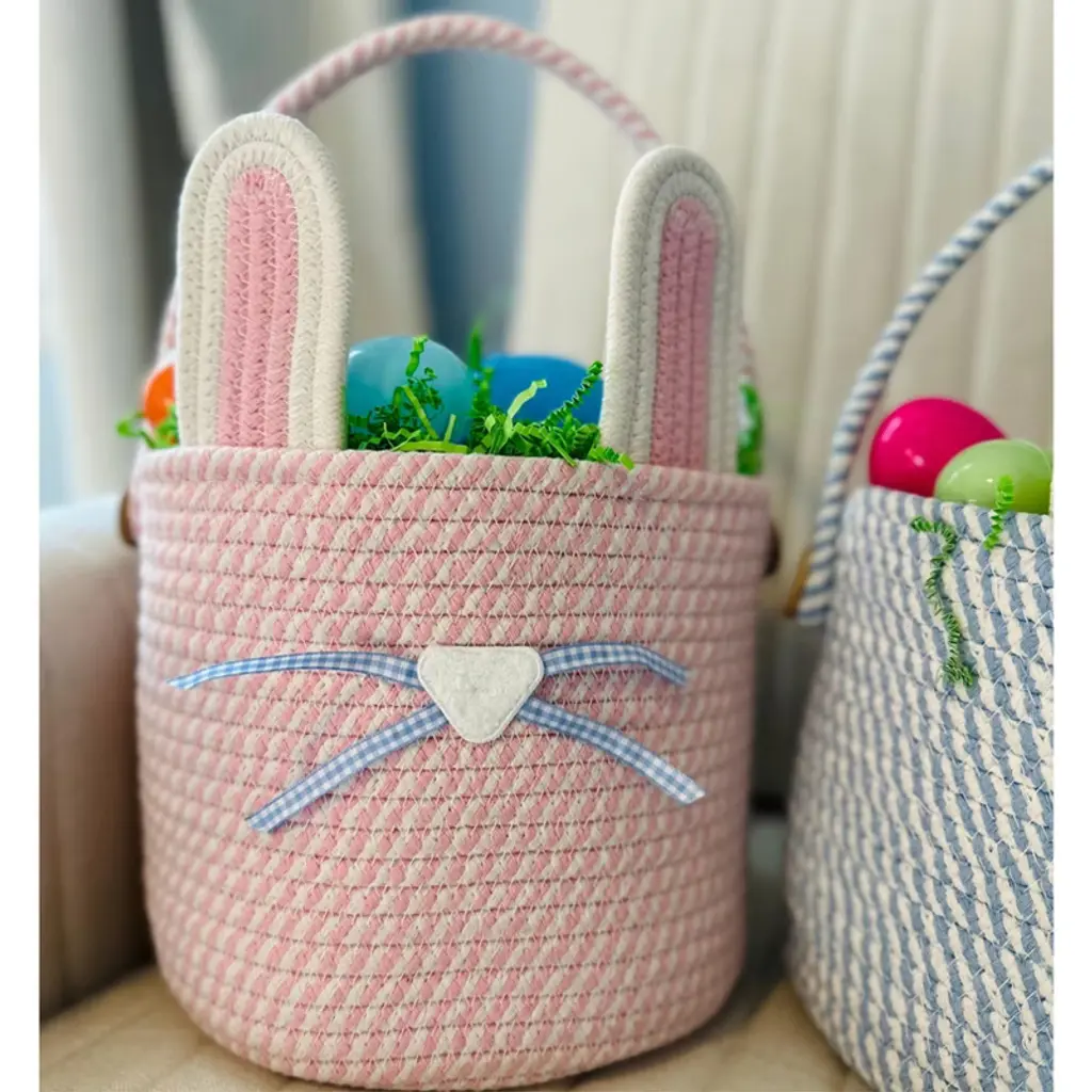 Hop into the season with this adorable Ramus & Co. Bunny Rope Basket! Available in blue or pink, this basket is perfect for holding all the best goodies. Crafted from durable, high-quality cotton rope, this charming basket features a soft, woven design with cute bunny ears, making it the perfect festive addition to your home.