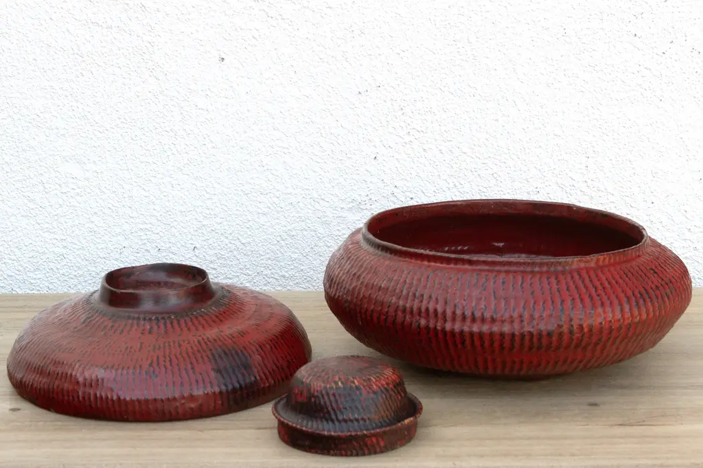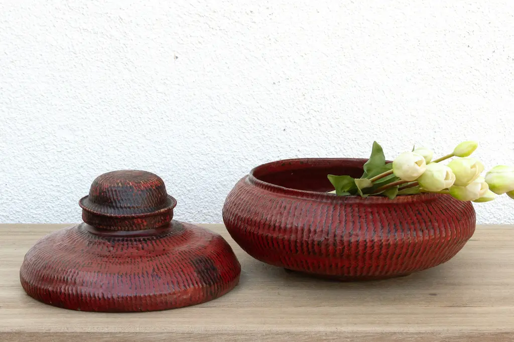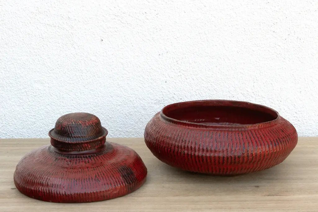 Burmese Red Lacquered Woven Basket