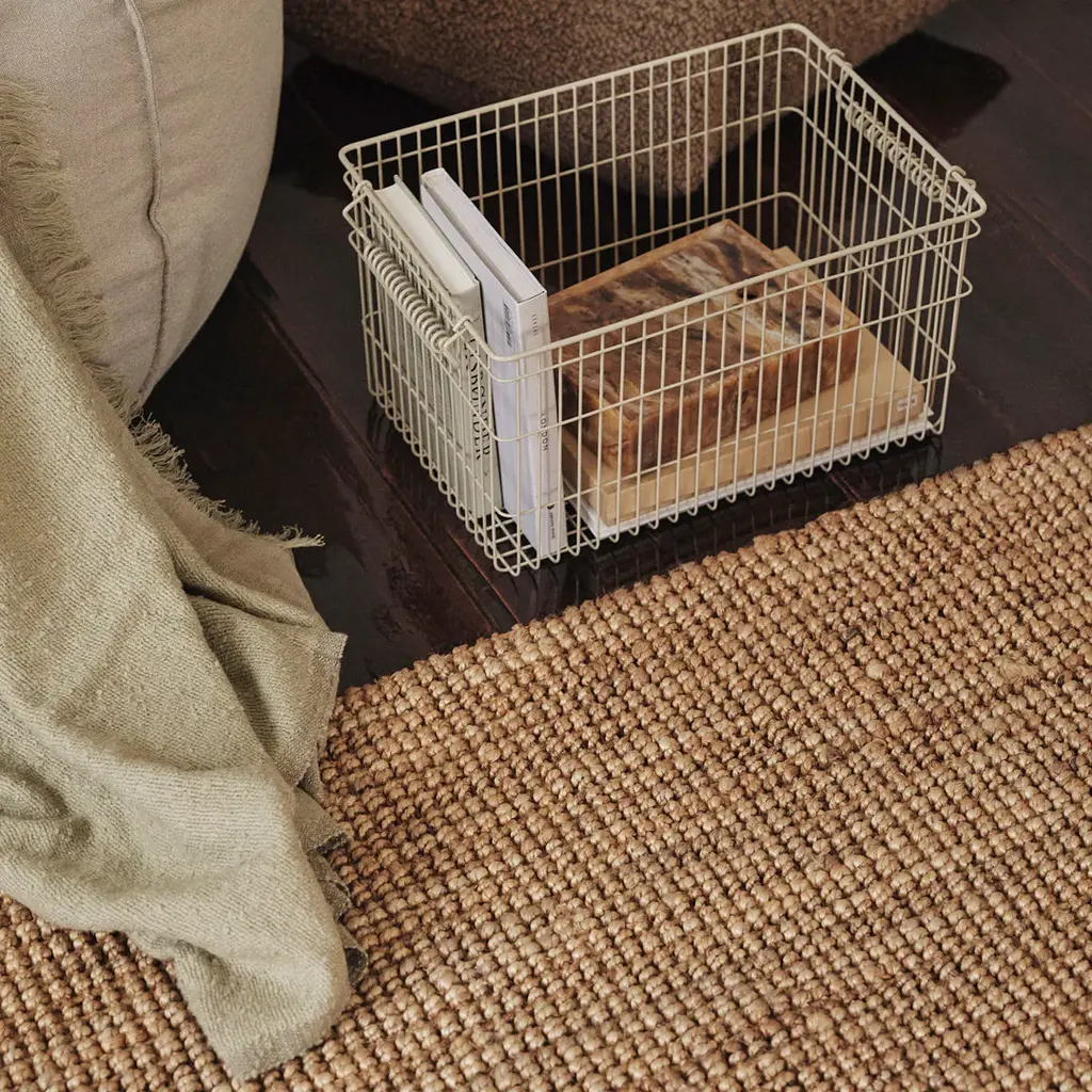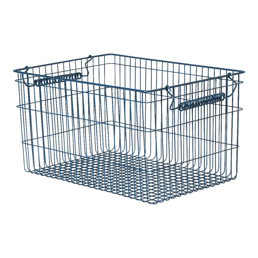 Inspired by the Spanish word `Cala' meaning `creek,' this stackable mesh basket is crafted from powder coated iron. Serving as a functional storage solution, it befits a number of environments, whether used in the office for organizing supplies, the bathroom for toiletries, or the kids' room for toys. Merging versatility with a touch of refinement, its unique feature is its distinctive metal spiral handle, which adds a decorative element while providing a comfortable grip. Stack maximum 3 baskets on top of each other.