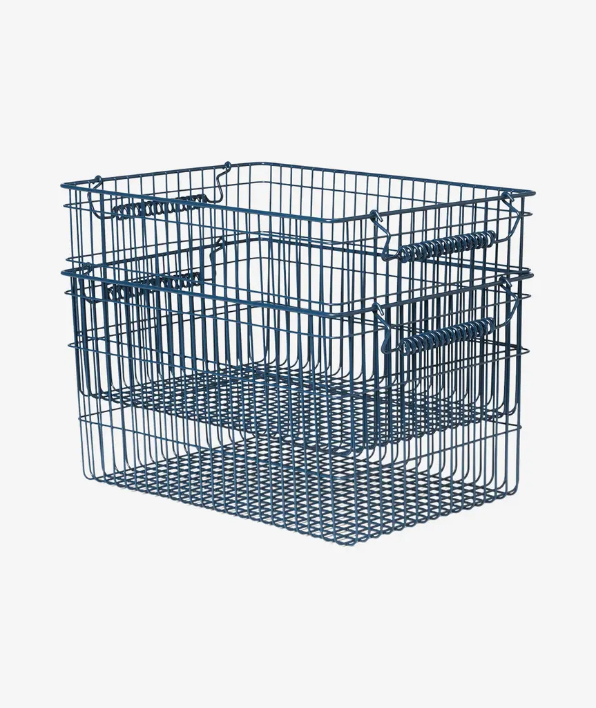 Inspired by the Spanish word ‘*Cala*’ meaning ‘creek,’ this stackable mesh basket is crafted from powder coated iron. Serving as a functional storage solution, it befits a number of environments, whether used in the office for organizing supplies, the bathroom for toiletries, or the kids' room for toys. Merging versatility with a touch of refinement, its unique feature is its distinctive metal spiral handle, which adds a decorative element while providing a comfortable grip. *Please note - this item is expected to be available for shipping in early March, 2025