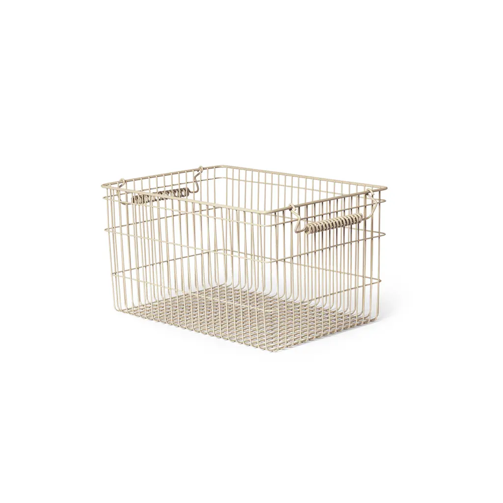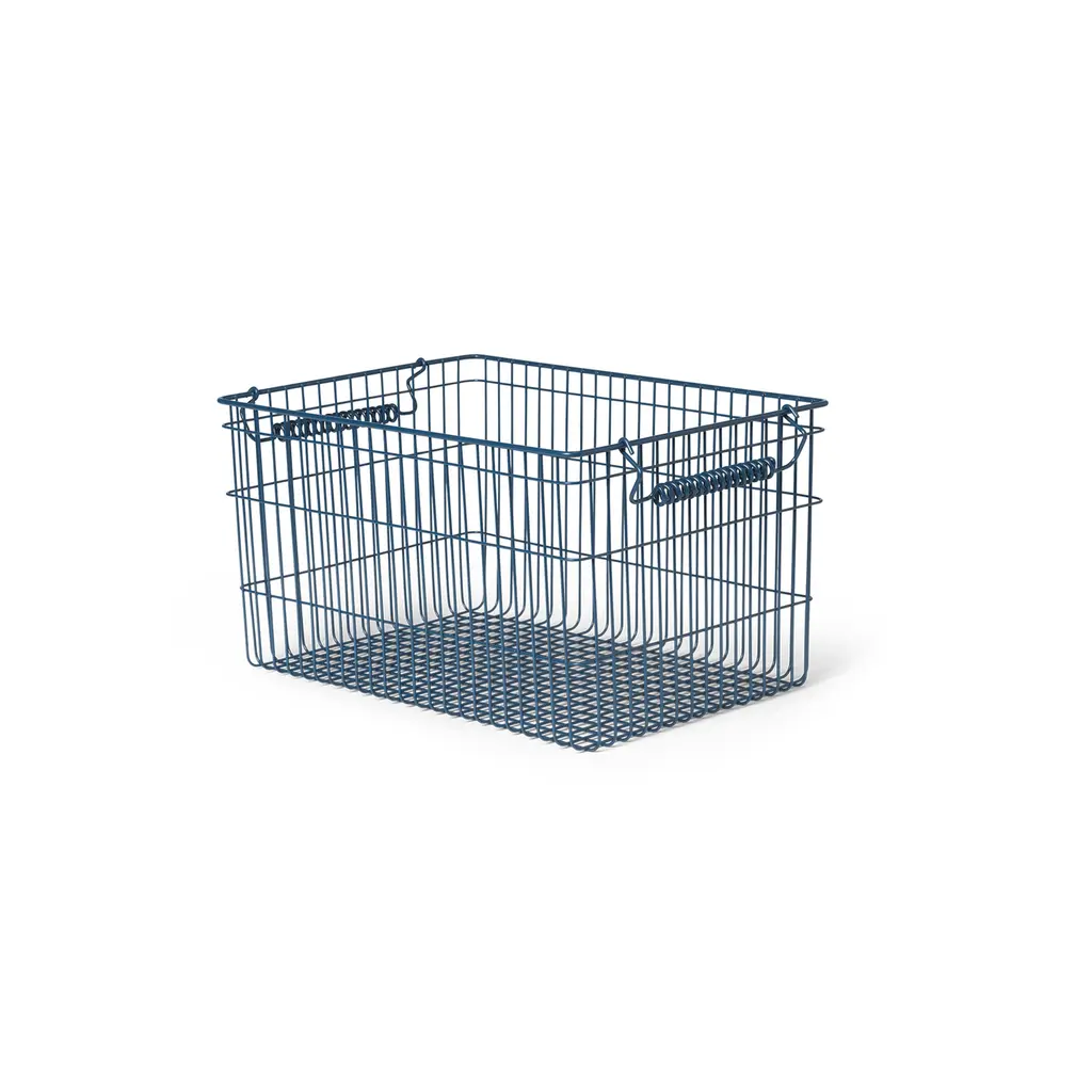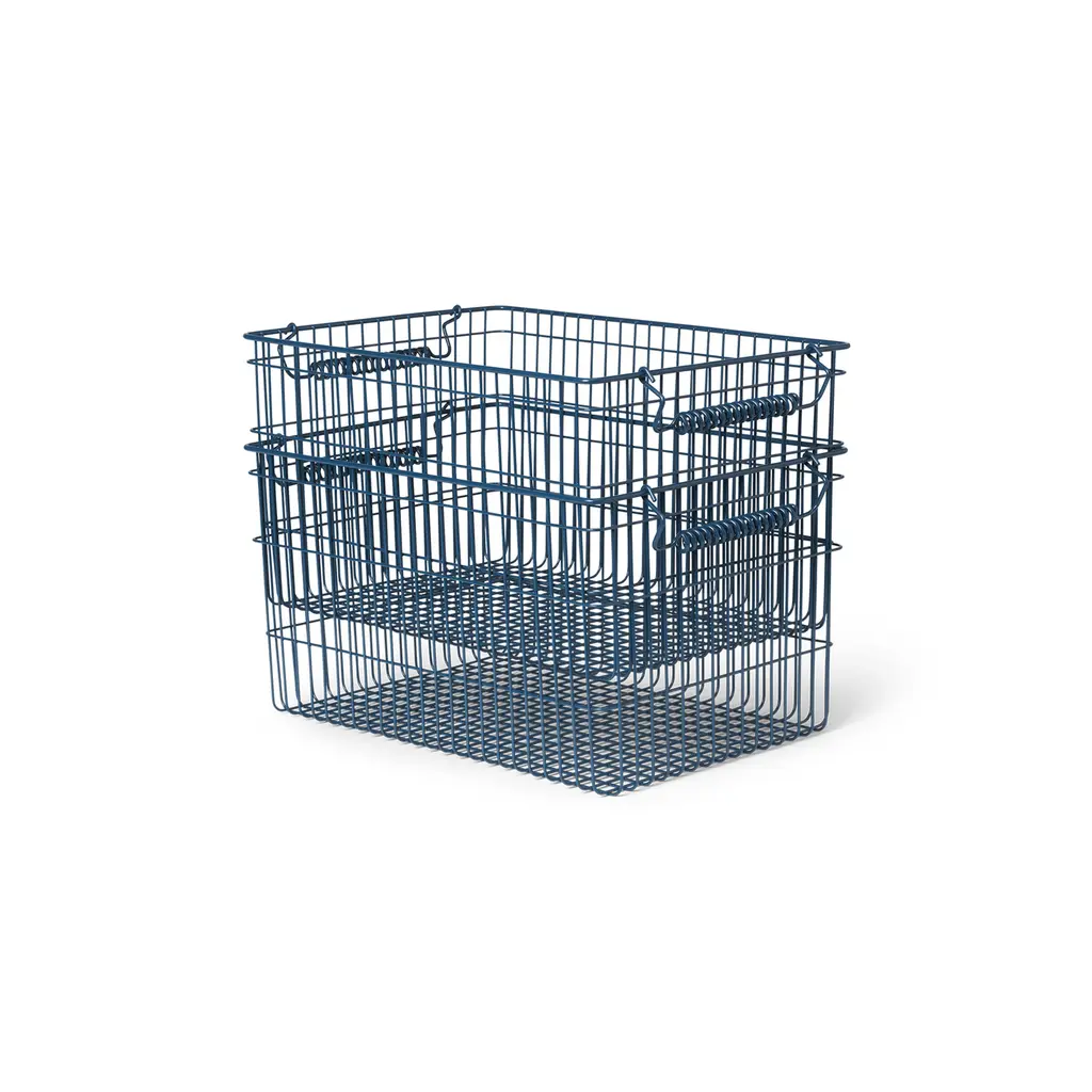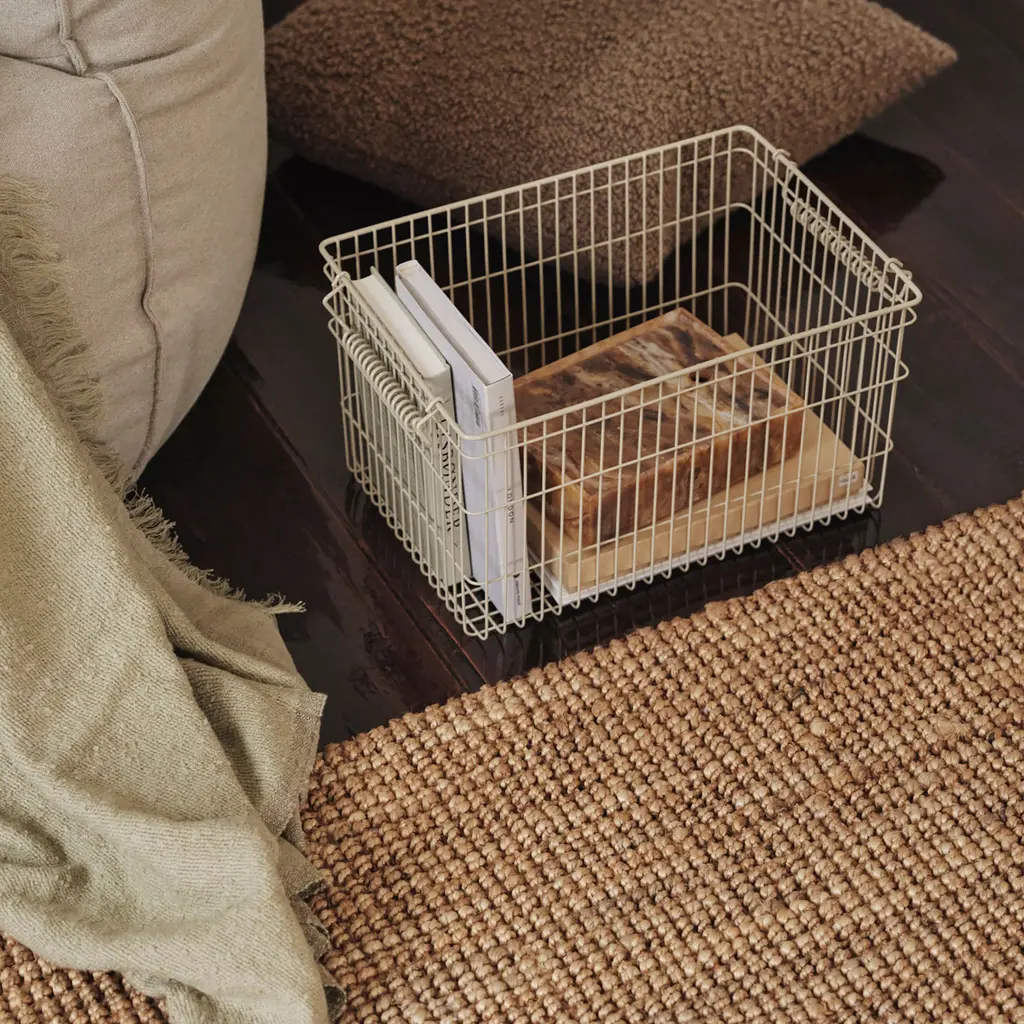 Drawing inspiration from the Spanish word for ‘creek,’ the Ferm Living Cala Stackable Baskets offer a stylish and practical storage solution for your home. The design is simple but distinctive at the same time, with the handle boasting a metal spiral reminding of a creek’s rushing water. The rounded shapes of the handles not only add a decorative accent, but also provide a comfortable way to carry these baskets around the home. The powder-coated iron is durable, resistant to wear, and comes in different color finishes. Rectangular and tall, the Cala baskets are both spacious and versatile. Use them in the kitchen to store accessories and towels; in the bathroom for essentials and toiletries; in a home office for supplies and desk items; or in a child’s room to organize toys. Regardless, the Ferm Living Cala Stackable Baskets are incredibly practical and can be easily stacked three baskets high to save storage space.