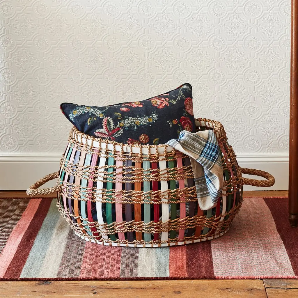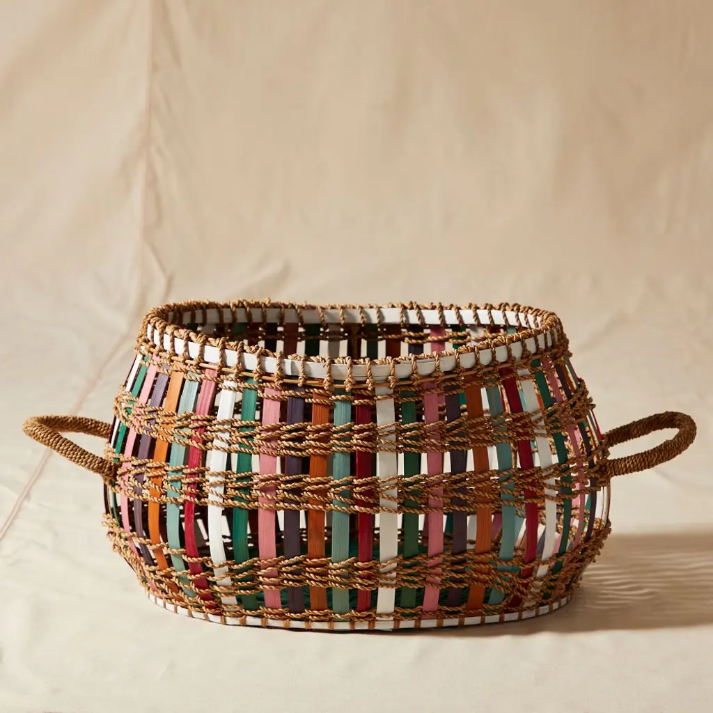 Part sculpture, part storage. Bright bamboo slats and an airy, open weave make this handwoven basket a happy marriage of color and craft. Elevate your everyday.