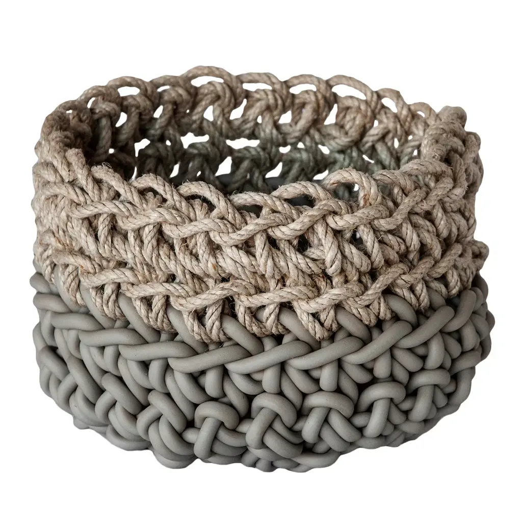 Basket Canapa HD3Neoprene yarn 8 mm and natural hempHand crochetedRubber is an amazing material, essential in many industries because of its unique properties:Elastic – it bounces back to its original shape after being stretched or deformed.Durable – it can handle pressure, impacts, and wear.Waterproof – it keeps out liquids and gases.Insulating – both thermally and electrically.To make it last longer, just keep it away from excessive heat!