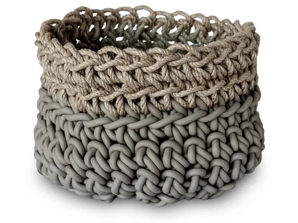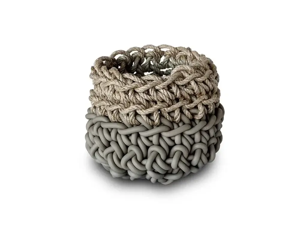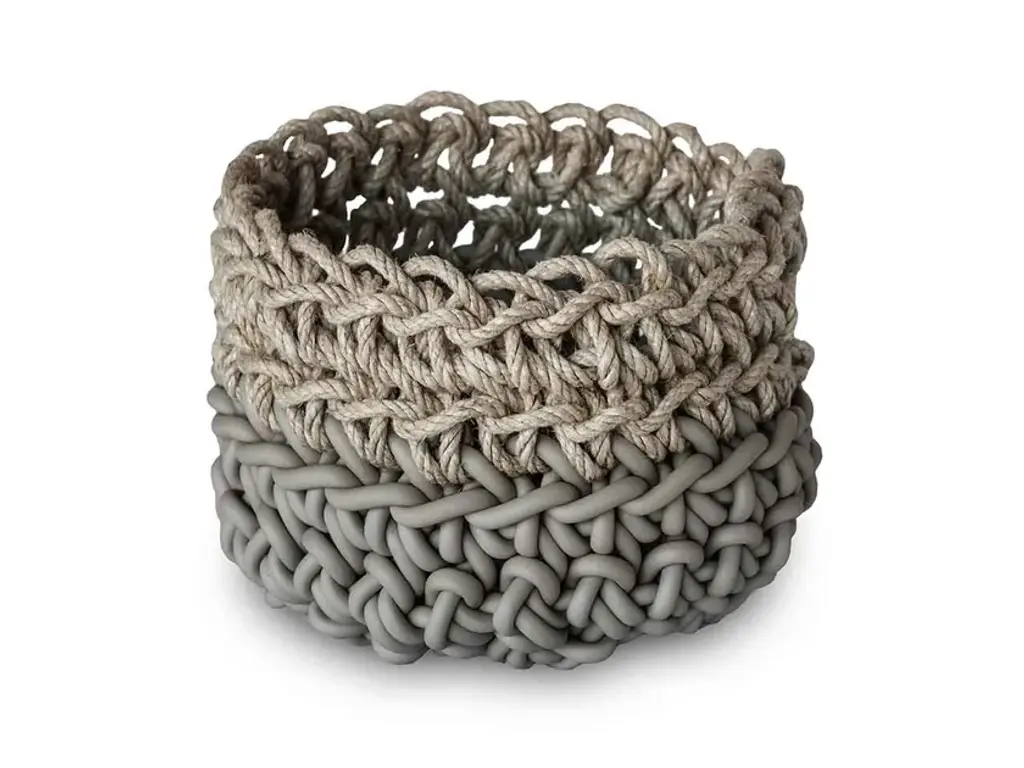 Set HD3 Canapa - made up of: HD2 – HD3 – HD4Baskets in neoprene yarn 8 mm and natural hempHand crochetedRubber is an amazing material, essential in many industries because of its unique properties:Elastic – it bounces back to its original shape after being stretched or deformed.Durable – it can handle pressure, impacts, and wear.Waterproof – it keeps out liquids and gases.Insulating – both thermally and electrically.To make it last longer, just keep it away from excessive heat!