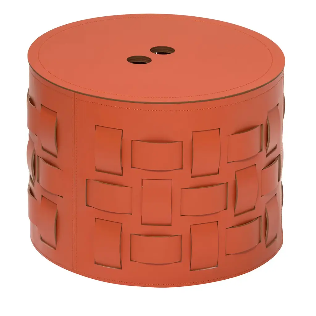 The Cancun baskets are characterized by a weave that develops only through vertical dotted lines that, being cut diagonally, give life to a design that reminds of the warm and retro atmospheres of certain fabrics typical of Central America. Finest regenerated reinforced leather structure with water-resistant and UV-resistant finish. Non-slip waterproof rubber base underneath. Fit for both indoor and outdoor use. Other colors are available. Please ask Concierge for details.