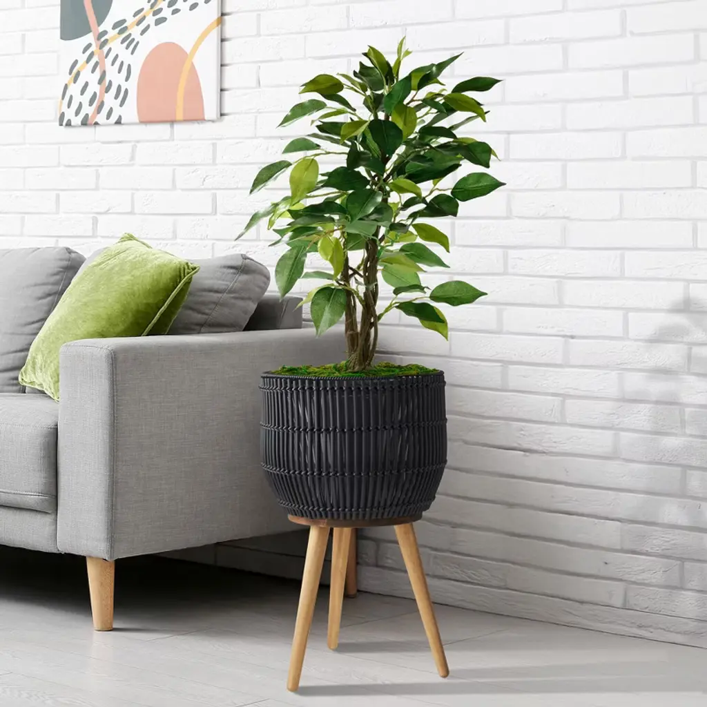 Casafield Planter Basket With Stand In Black, Floor Planter With Wood Legs, Large Plant Pot Cover With Liner