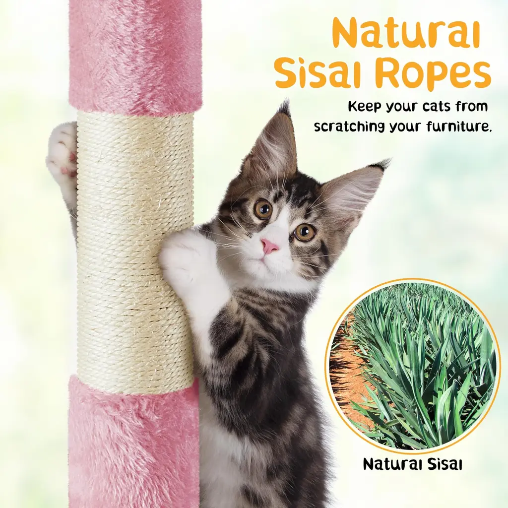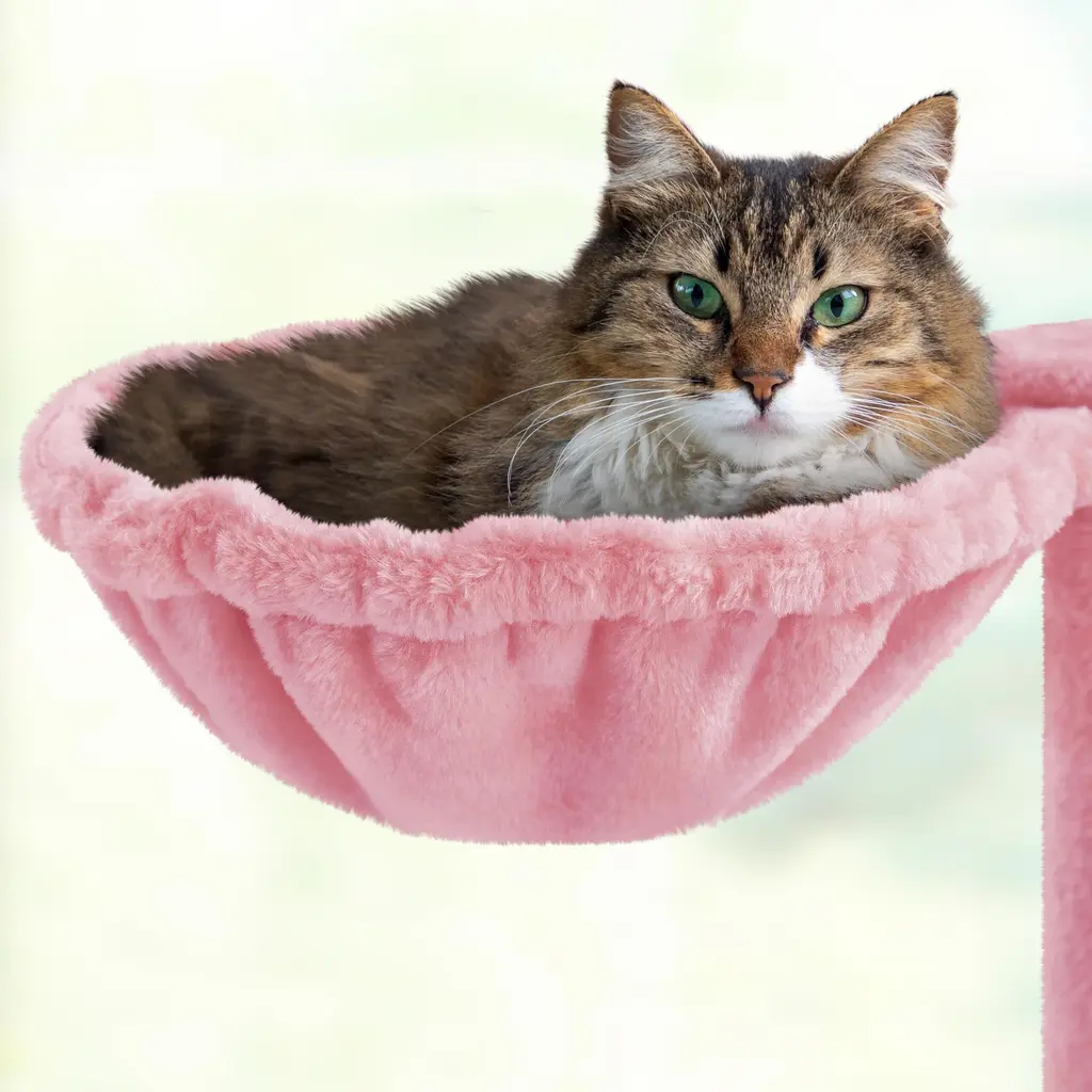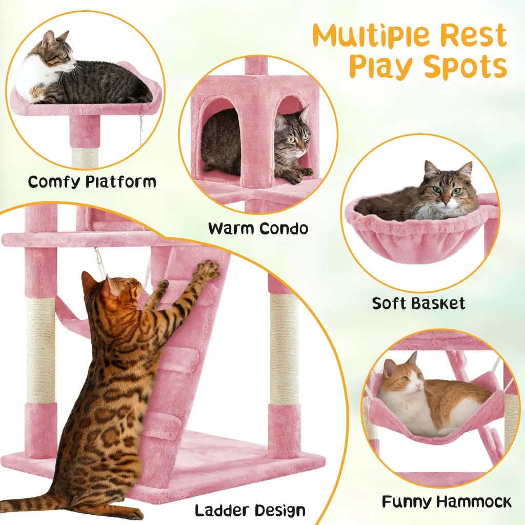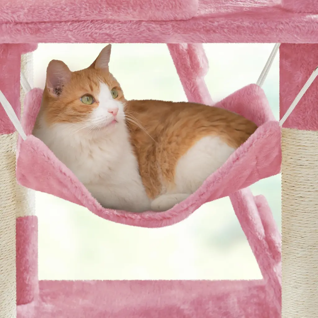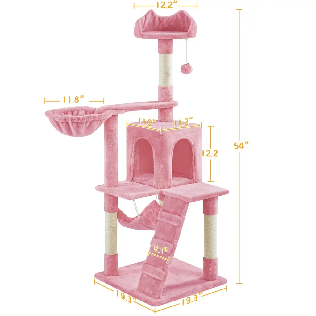 Cat Tree, 54in Tall Cat Tower W/extended Platform & Basket, Spacious Cat Condo, Funny Hammock, Scratching Posts & Ladder - Pink