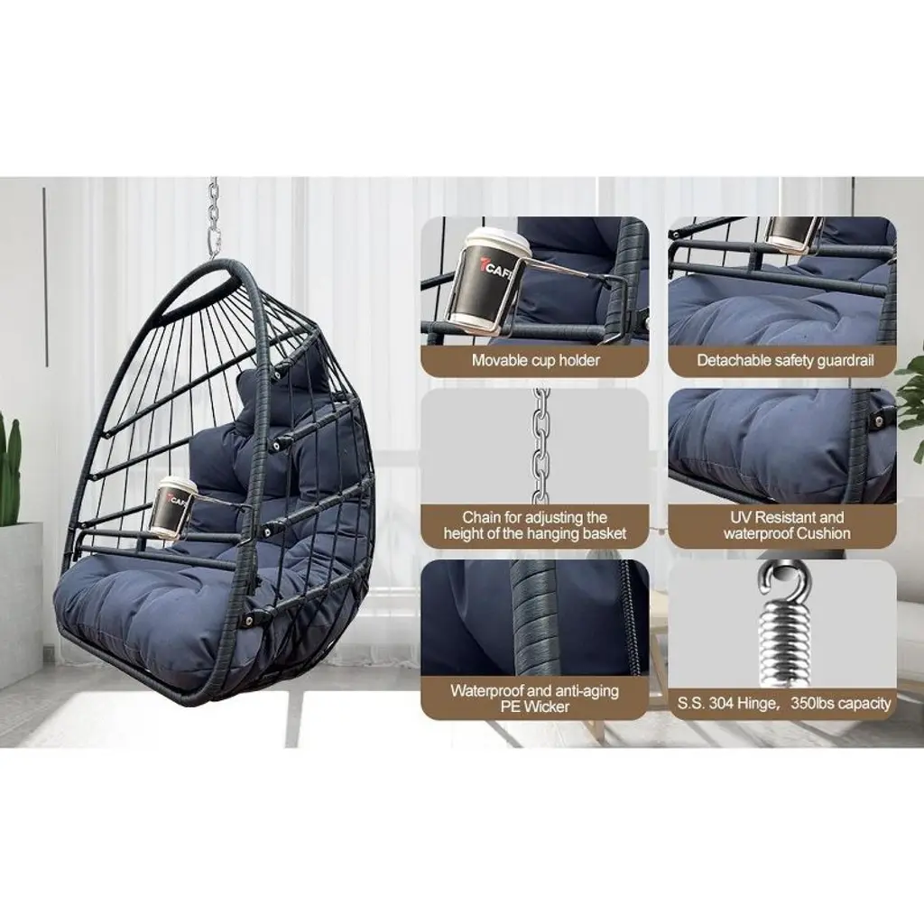 Cavinas Egg Outdoor Hammock Basket Swing Chair With Uv Resistant Cushion And Foldable Frame,porch Swing For Balcony,garden,courtyard,black