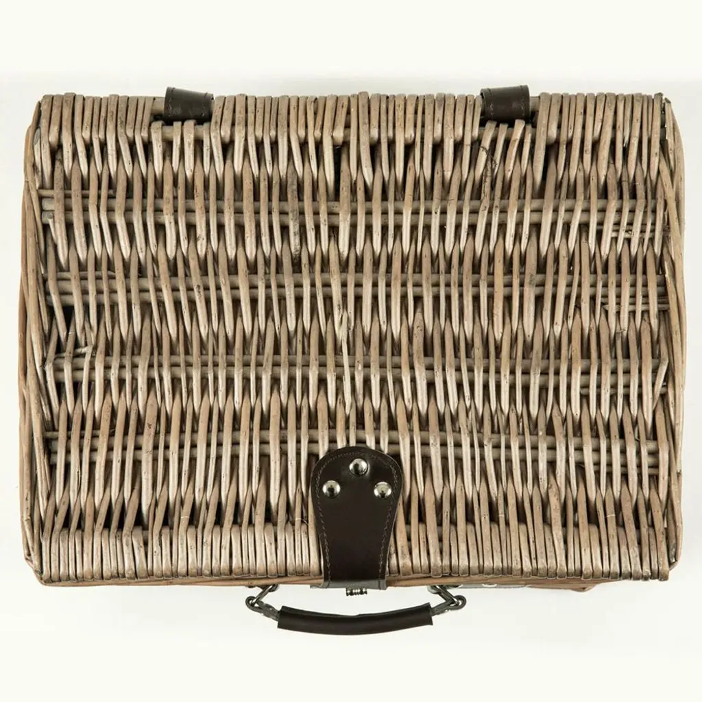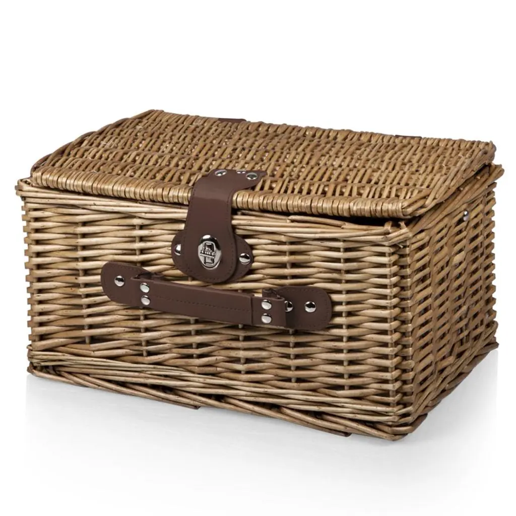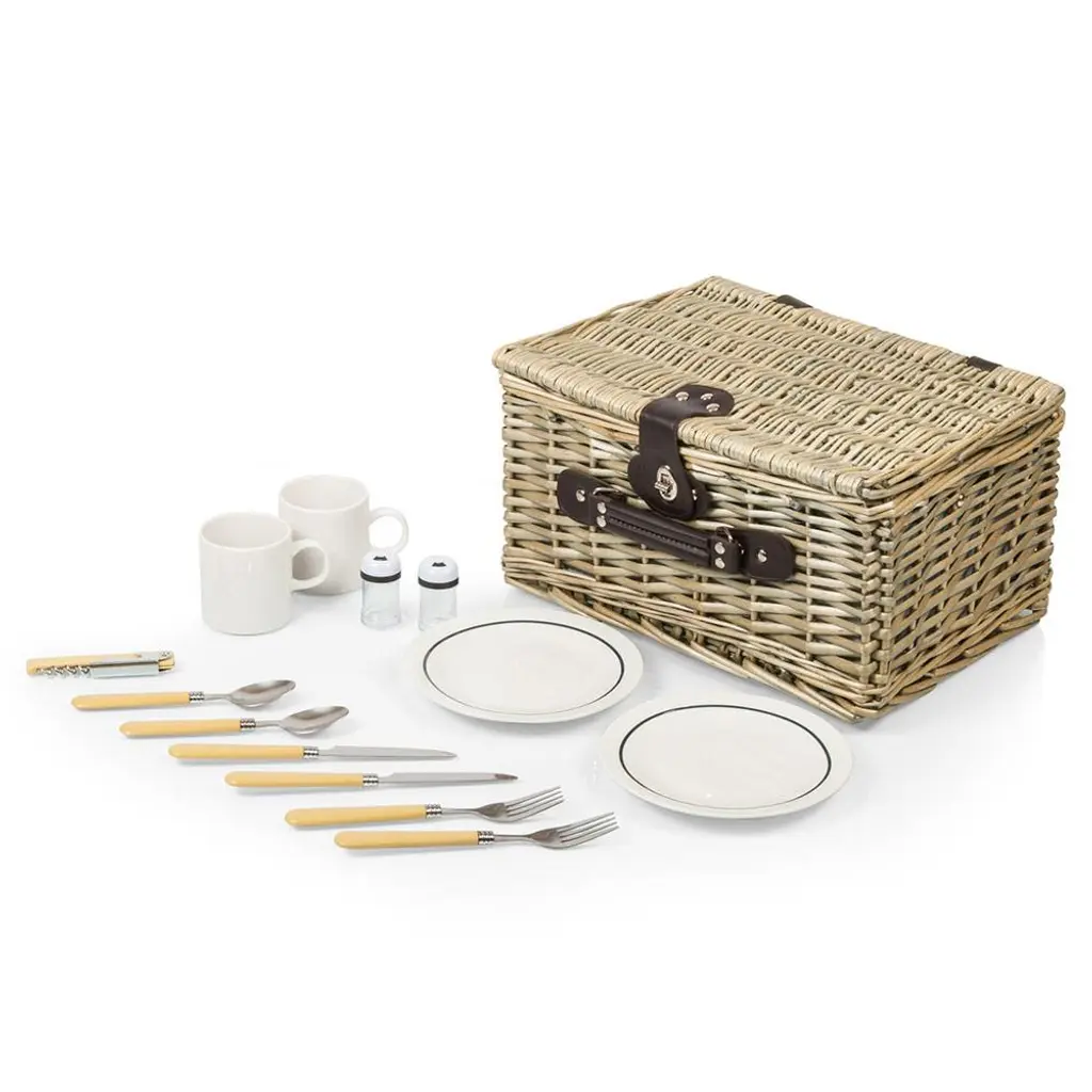 Celena Coastal Beige Willow Blue Picnic Basket With Serverware For 2