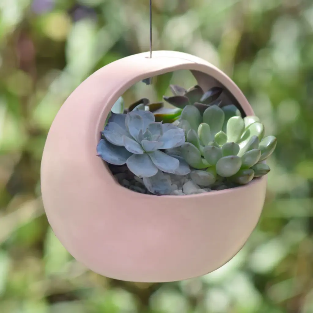 Ceramic Air Planter, Basket Style, 4.5x4.5", Coral