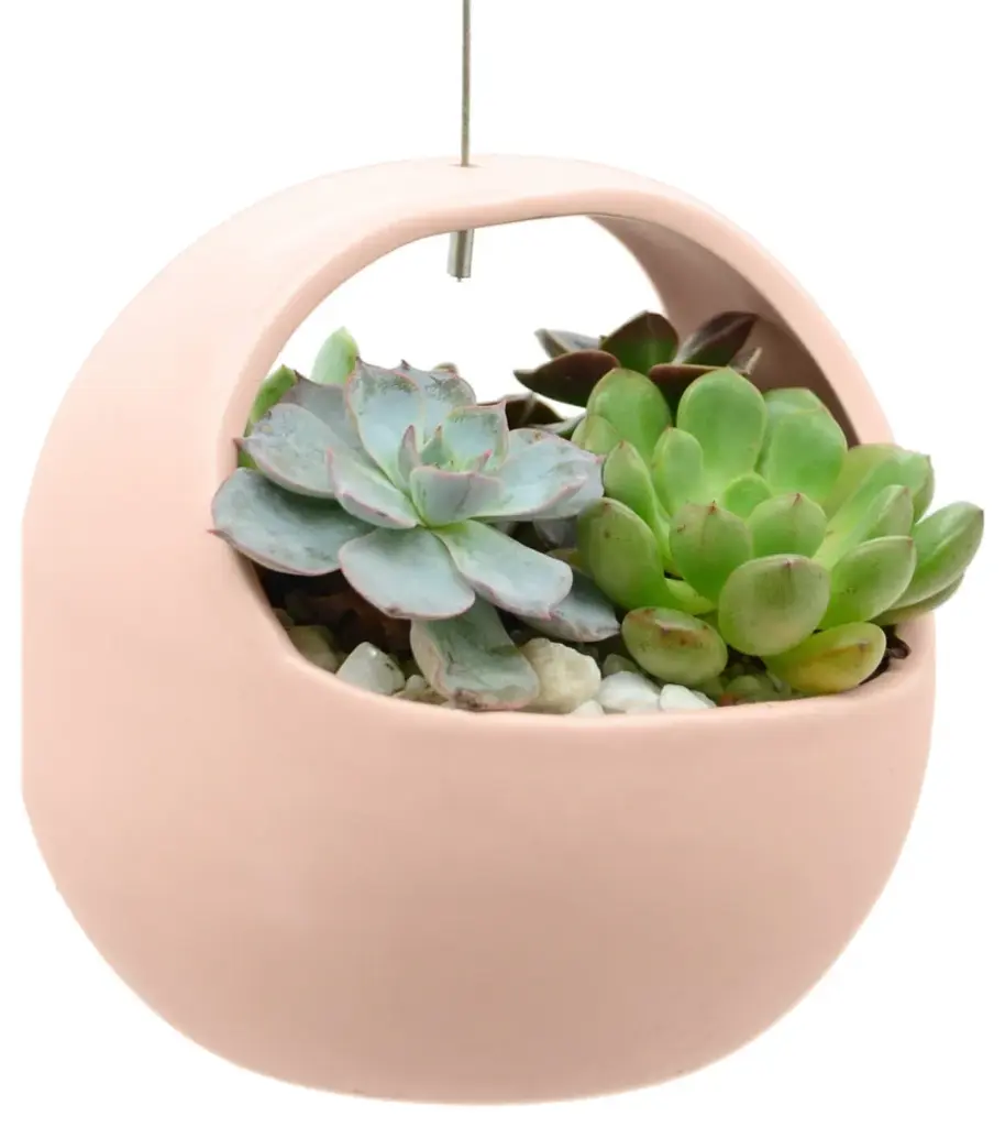 Arcadia Garden Products Basket Air Planters are a unique and aesthetic way to grow your delicate air plants, succulents or cactus. They make great small item organizers such as candy, school and office supplies. These come ready to hang making an easy addition inside or outside. A perfect accessory to the patio, the garden, or for fresh herbs in the kitchen.INDOOR/OUTDOOR: Designed using a high-quality ceramic, perfect for indoor or outdoor useHARDWARE INCLUDED: Include durable wire hangerCREATE: Create a hanging garden with cactus, succulents or small herbsORGANIZE: Great for organizing office supplies, toiletries and other smaller itemsSize: 4.5"x4.5"� | Material: Ceramic | Weather Resistant | Plants Not Included