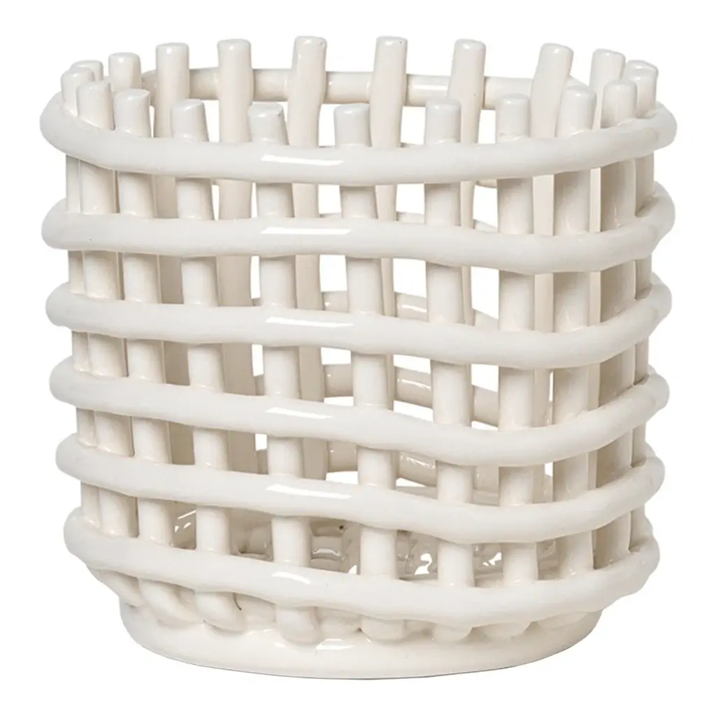 Bringing the traditional basket weaving technique to pottery, our handmade Braided Baskets recreate the familiar feel of woven containers. Available in two sizes and colors – medium and large, and indigo blue and off white respectively – the multifunctional design can be put to use as a plant pot, fruit bowl or decorative focal point in a room. Each piece is unique.