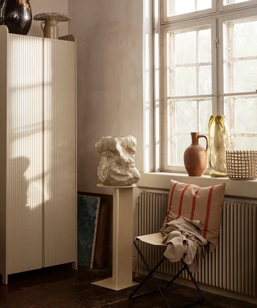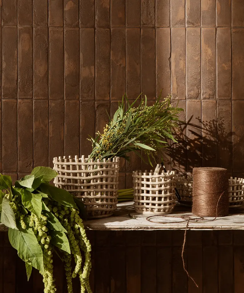 Bringing the traditional basket weaving technique to pottery, the handmade Braided Baskets recreate the familiar feel of woven containers. Available in two sizes and colors small and large, and indigo blue and off-white respectively the multifunctional design can be put to use as a plant pot, fruit bowl, or decorative focal point in a room. Each piece is unique. Designed and produced by the Copenhagen-based studio Ferm Living.