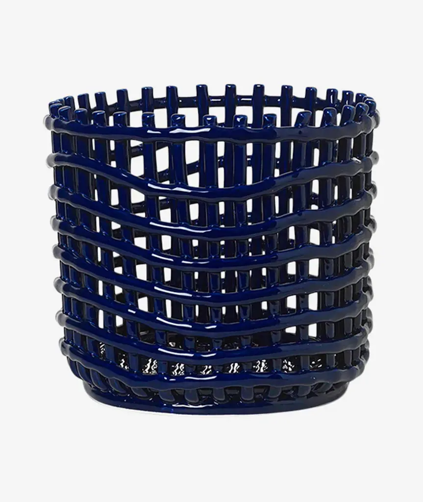 Bringing the traditional basket weaving technique to pottery, the handmade Braided Baskets recreate the familiar feel of woven containers. Available in two sizes and colors – small and large, and indigo blue and off-white respectively – the multifunctional design can be put to use as a plant pot, fruit bowl or decorative focal point in a room. Each piece is unique.