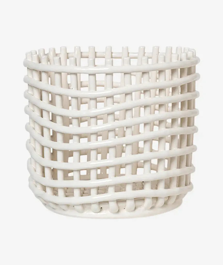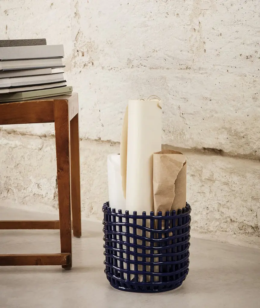 Bringing the traditional basket weaving technique to pottery, the handmade Braided Baskets recreate the familiar feel of woven containers. Available in two sizes and colors – small and large, and indigo blue and off-white respectively – the multifunctional design can be put to use as a plant pot, fruit bowl or decorative focal point in a room. Each piece is unique.