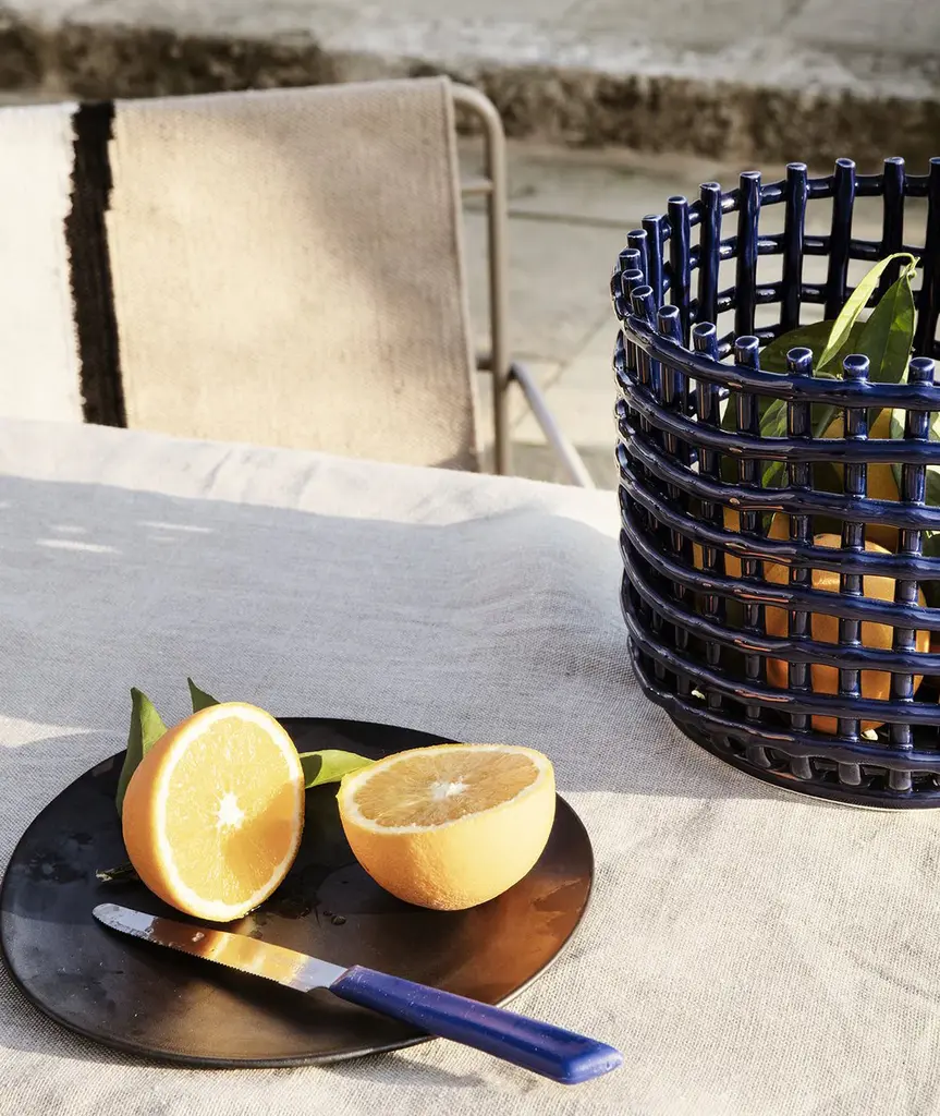 Bringing the traditional basket weaving technique to pottery, the handmade Braided Baskets recreate the familiar feel of woven containers. Available in two sizes and colors – small and large, and indigo blue and off-white respectively – the multifunctional design can be put to use as a plant pot, fruit bowl or decorative focal point in a room. Each piece is unique.