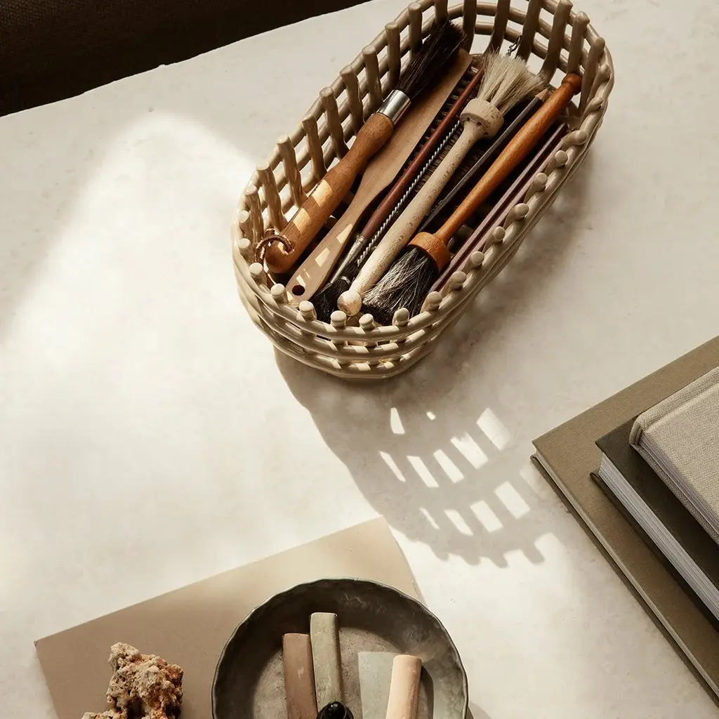 Bringing the traditional basket weaving technique to pottery, our handmade Ceramic Baskets recreate the familiar feel of woven containers. This multifunctional design can be placed in any room and is the ideal storage solution for cherished objects. Sculpted by hand and artfully uneven, no two pieces are the same.