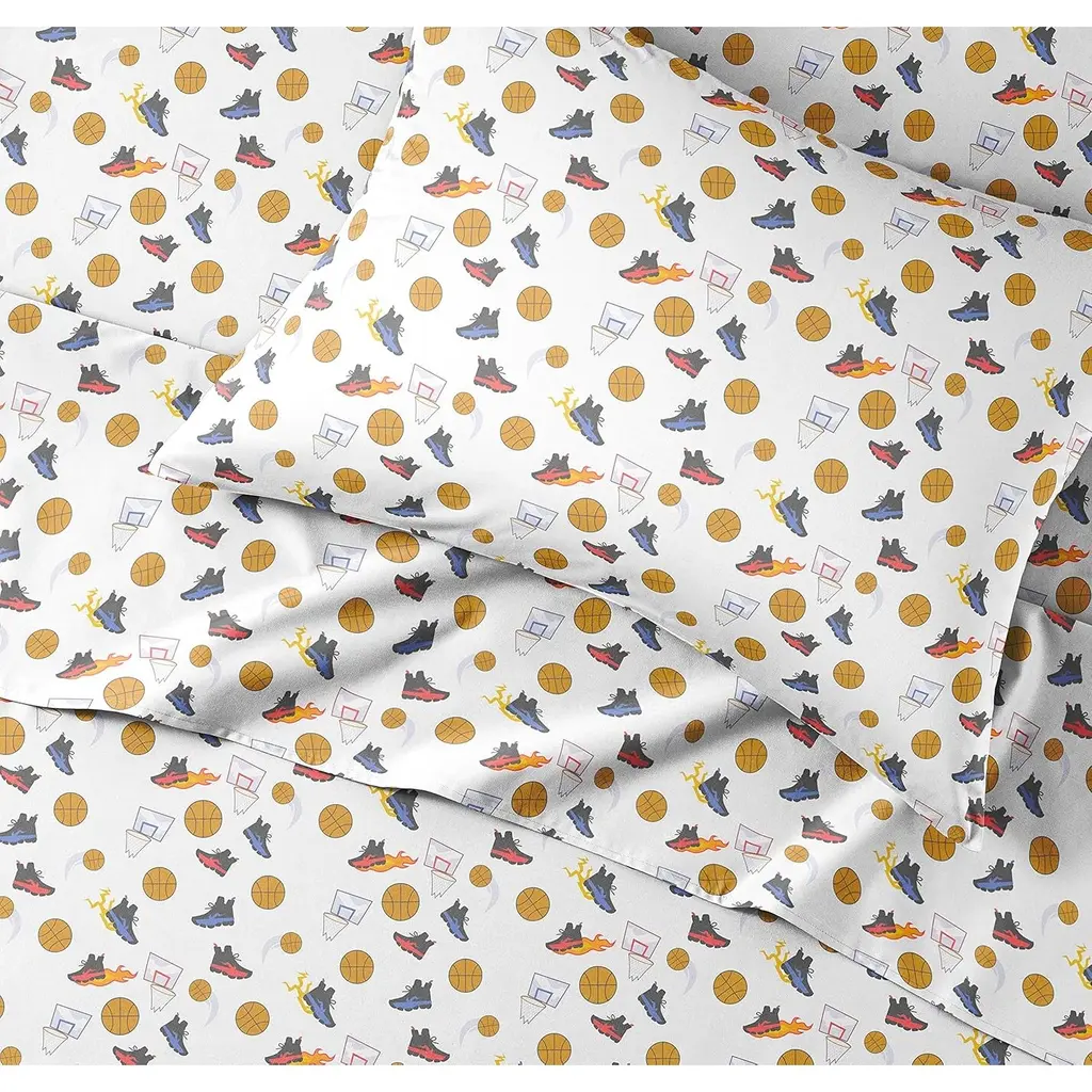 Cgk Linens Kids 4 Piece Printed Microfiber Easy Fit Cute Bed Sheet Set - Basketball - Full