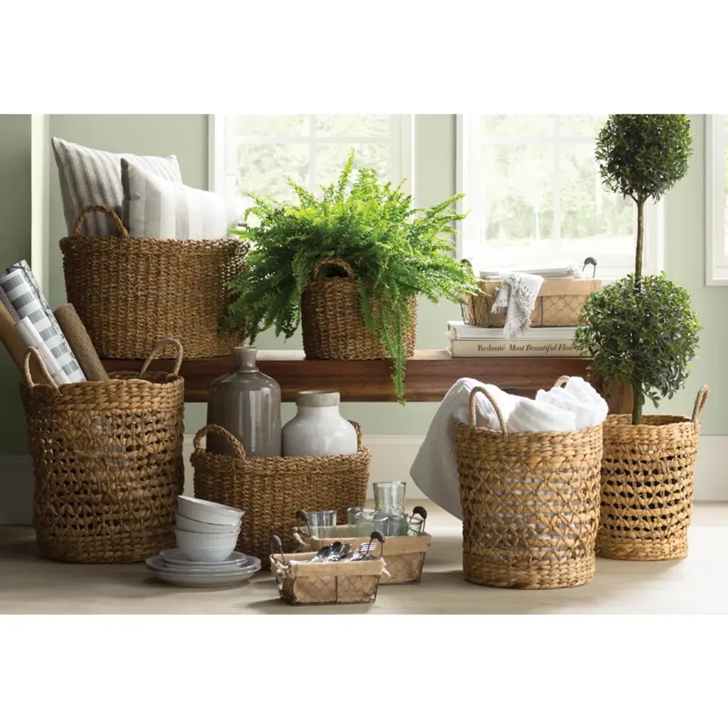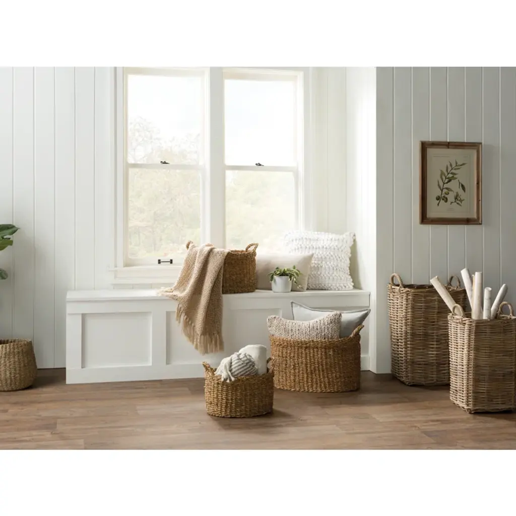 This 3-piece basket set keeps clutter out of sight while anchoring your space with plenty of texture. They’re made from thickly woven seagrass for a breezy feel, and they have a natural brown hue that complements aesthetics from traditional to coastal. These baskets have small, medium, and large designs that are easy to corral whatever you need to tuck away - from umbrellas and gloves in the entryway, to pillows and books in the living room. We love that these storage baskets feature a nestable design that stacks into one another when they're not in use.