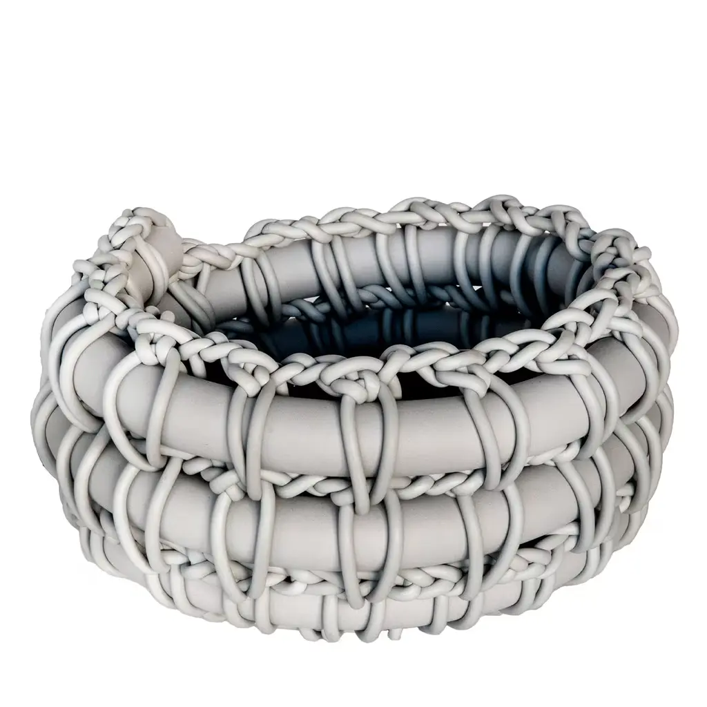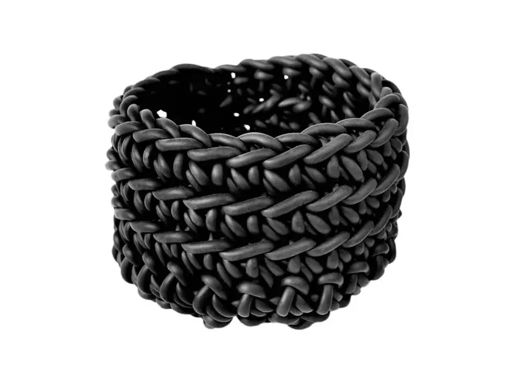 Set D3 Cilindro - made up of: D2 – D3 – D4Baskets in neoprene yarn 8 mmHand crocheted.Rubber is an amazing material, essential in many industries because of its unique properties:Elastic – it bounces back to its original shape after being stretched or deformed.Durable – it can handle pressure, impacts, and wear.Waterproof – it keeps out liquids and gases.Insulating – both thermally and electrically.To make it last longer, just keep it away from excessive heat!