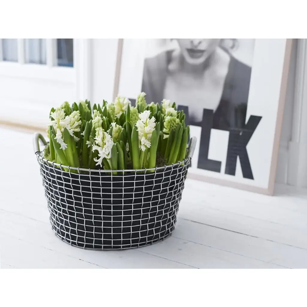 Korbo’s wire basket Classic is a beautiful hand-woven metal basket that features two convenient handles. The sturdy wire basket helps to keep your home in order whilst adding a stylish touch to the interior. You can also make your Korbo baskets even more versatile with the separately sold bottom plates, basket liners and wall hangers. The Swedish company Korbo started manufacturing wire baskets in 1922 and the weaving technique has remained the same ever since. The baskets are woven by hand from a single long wire completely without welding. Thanks to the unique manufacturing technique and the superior materials, the baskets will last for a lifetime. First used by farmers and fisherman, the Korbo baskets are a great addition to any garden and household.