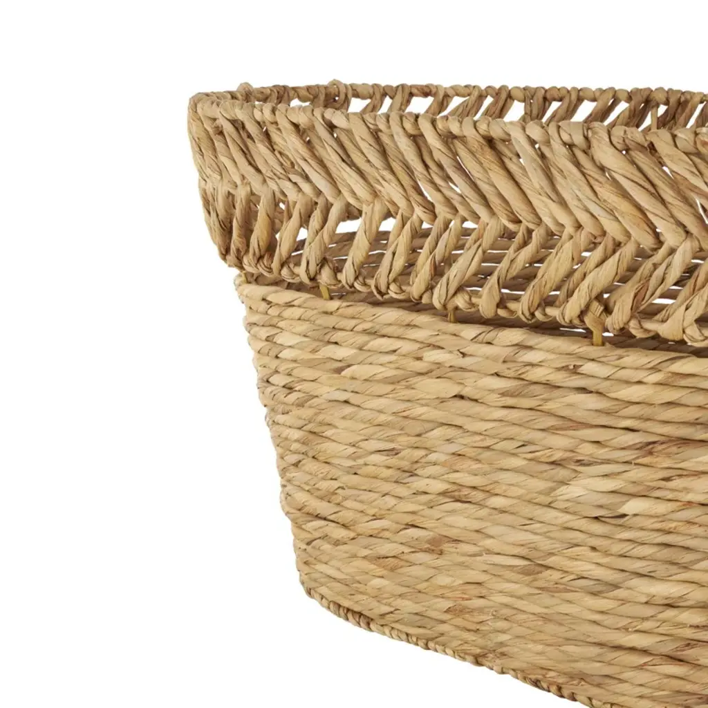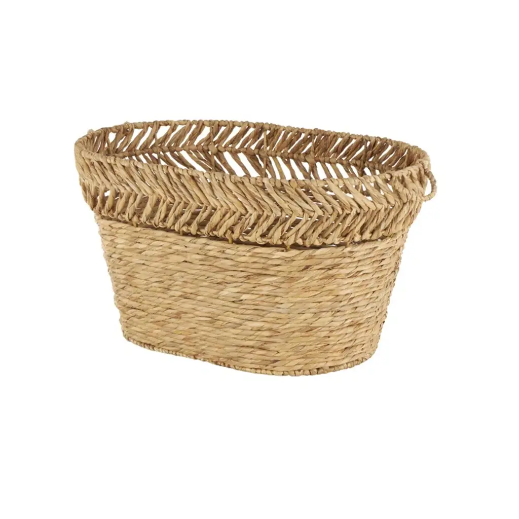 Cole And Grey Seagrass Handmade Woven Oval Storage Basket With Zig Zag Patterned Rim
