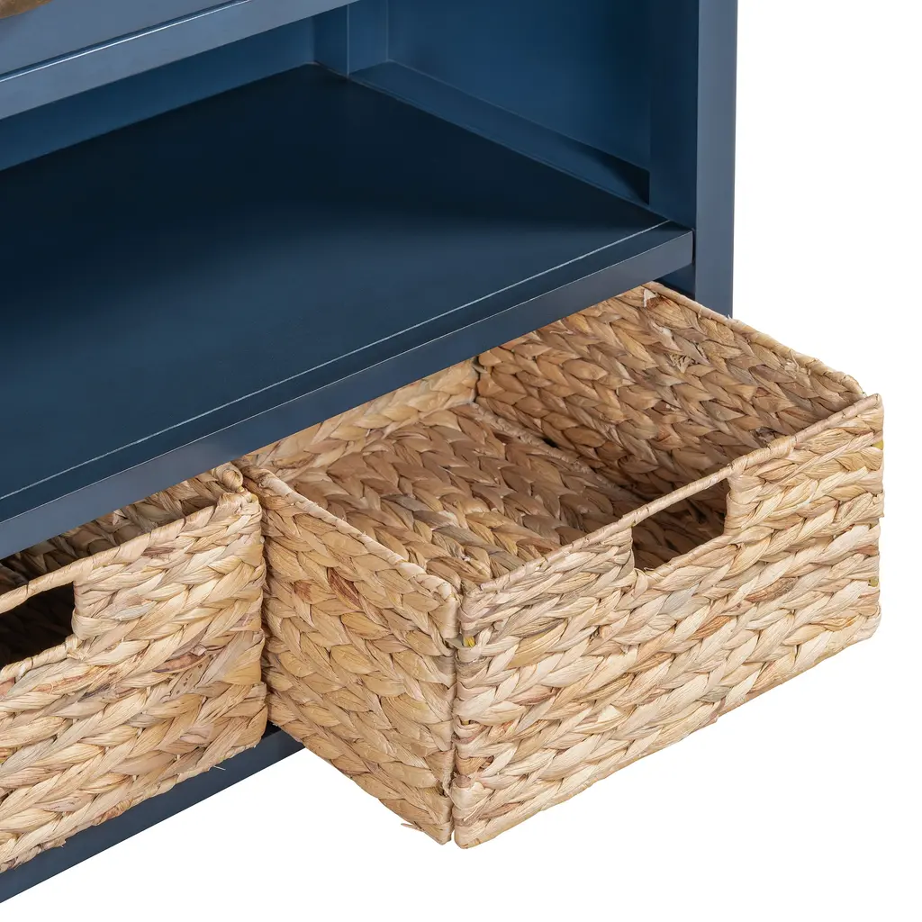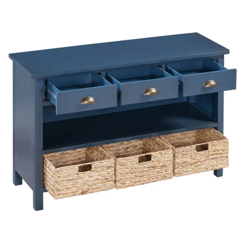 Console Table With Drawers And Water Hyacinth Woven Baskets