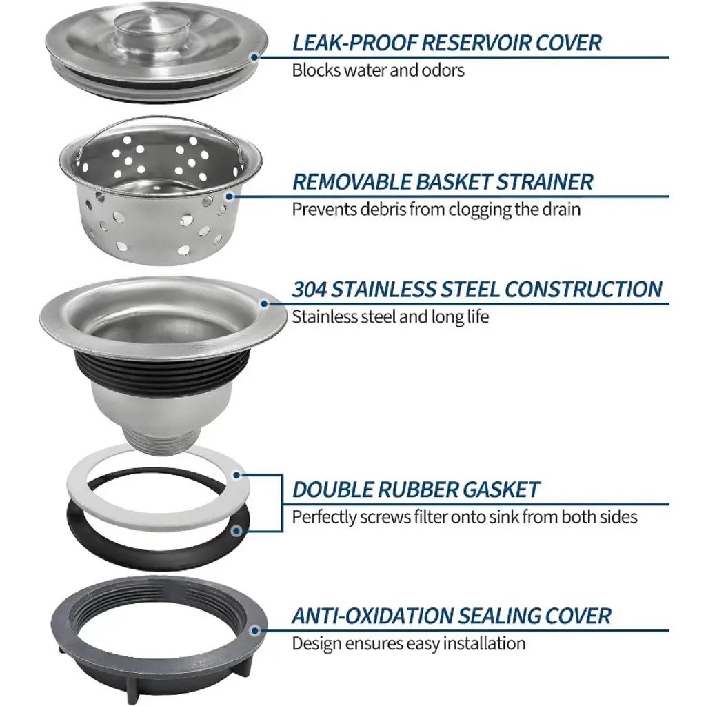 Coucheta 3-1/2 Inch Heavy Duty Stainless Steel Sink Drain Kit, Universal Deep Basket Strainer W/ Leak-proof Gasket & Sealing Lid