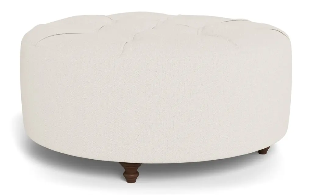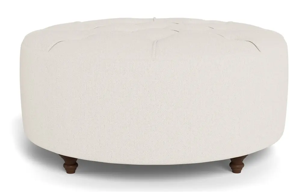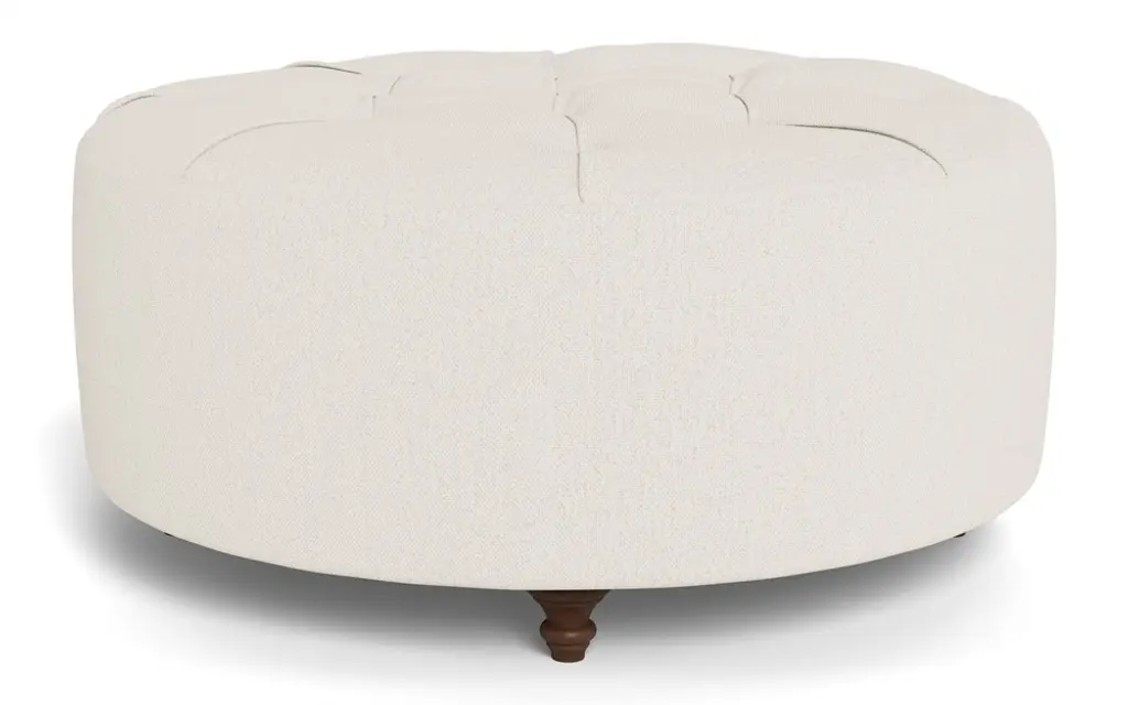 Our 42” Davina round ottoman brings effortless style and functionality to any living space. This classic silhouette boasts a button-tufted top and turned wood legs, while its comfortable cushion offers a firm yet cozy sit. Utilize Davina as a coffee table, as extra seating in the living room, or as a comfy footrest at the end of your sofa.