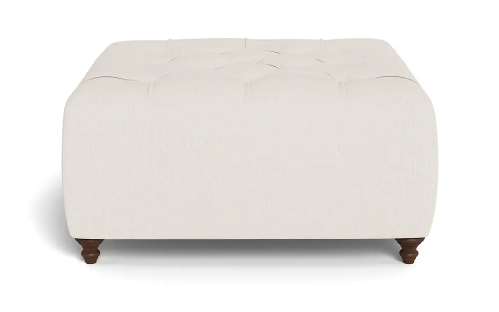 Our 36” Davina square ottoman brings effortless style and functionality to any living space. This classic silhouette boasts a button-tufted top and turned wood legs, while its comfortable cushion offers a firm yet cozy sit. Utilize Davina as a coffee table, as extra seating in the living room, or as a comfy footrest at the end of your sofa.