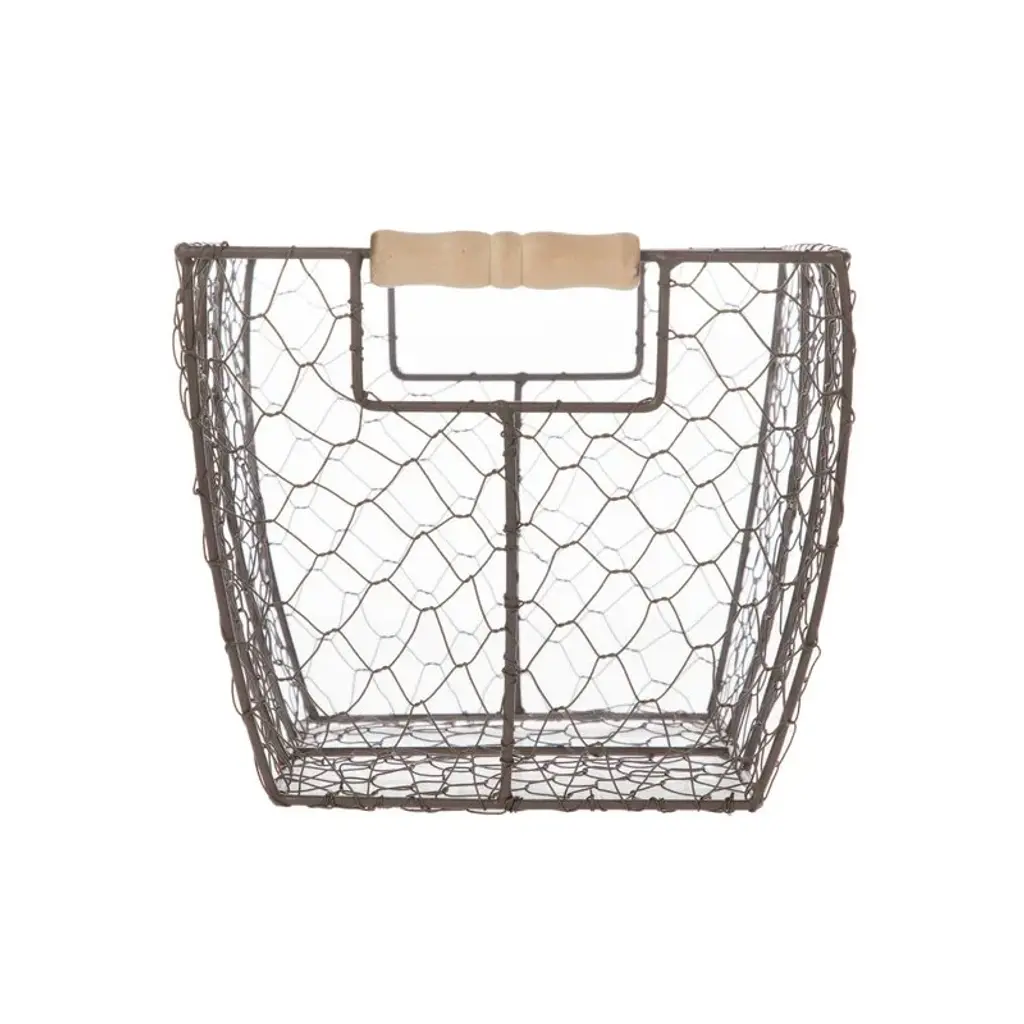 Decorative Brown Chicken Wire Basket With Wood Handles. 12.2x8x7.28