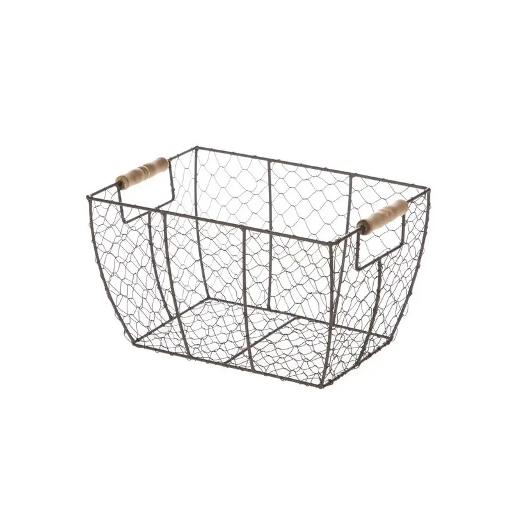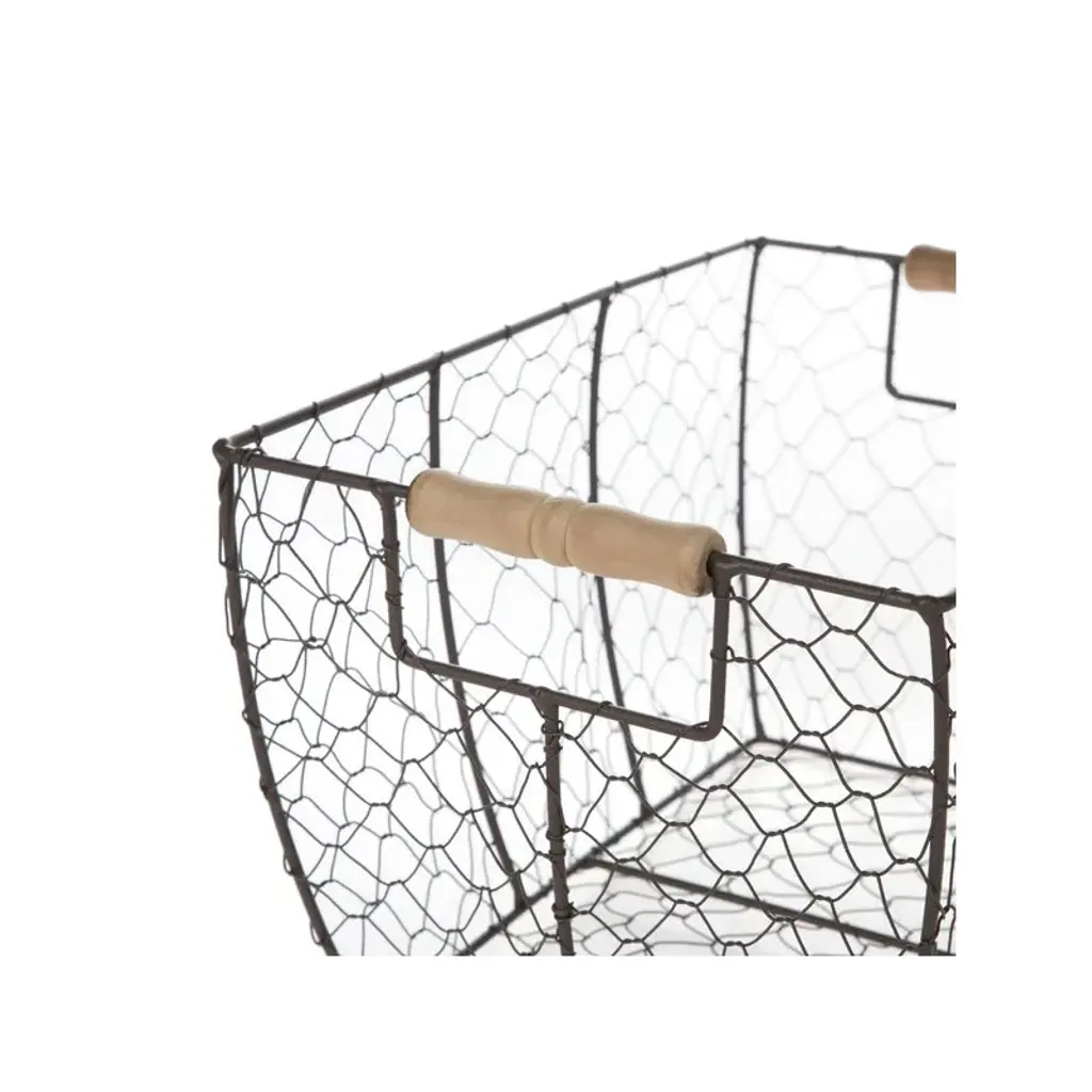Decorative Brown Chicken Wire Basket with Wood Handles. 12.2x8x7.28