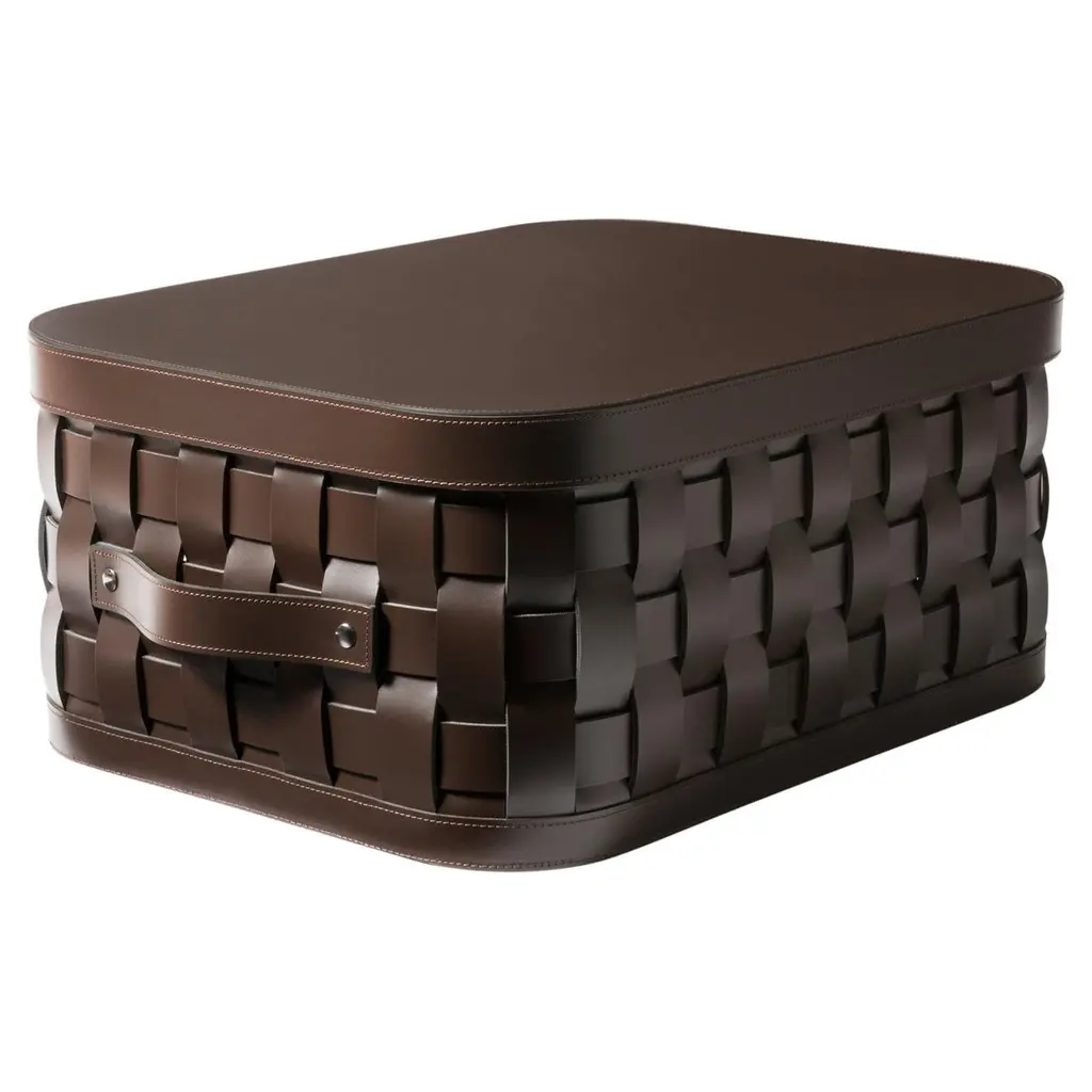 This exquisite handwoven basket is made of eco-friendly leather uniquely braided with brown-colored strips to give it a relaxed and rustic look. This basket is perfect as a container for keeping a room stylishly casual, and in order. The durable material, which is easy to clean, adds a versatile quality to this piece and allows it to be used both indoors, in a bathroom or living room, and outdoors, on a patio or by the pool. Its unique texture and design will make a statement in every area it is used.